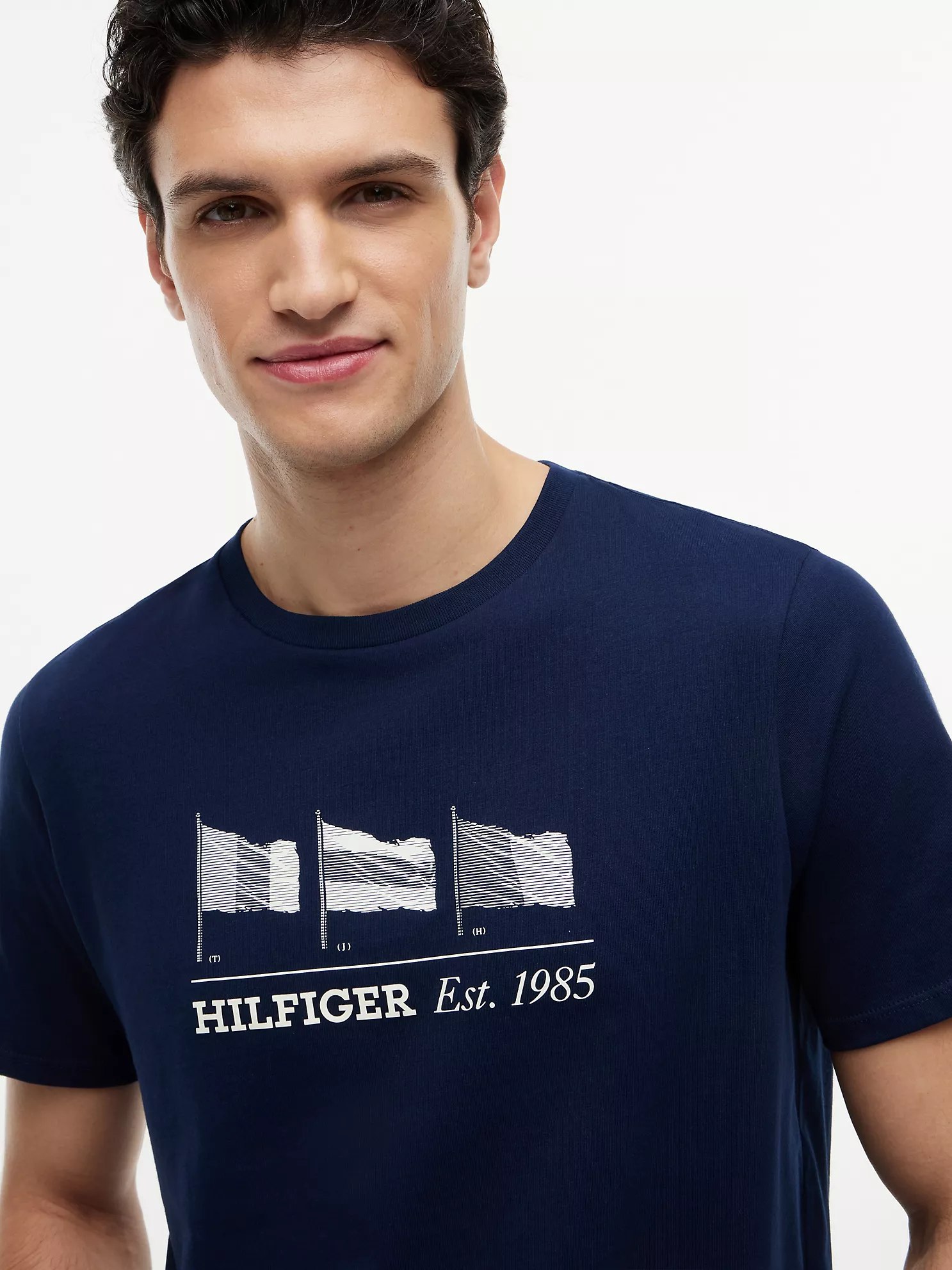 Tommy Hilfiger men’s T-shirt. Made from a cotton jersey knit with a smooth, soft feel and excellent stretch, our Hilfiger multi-flag logo tee is super comfortable.