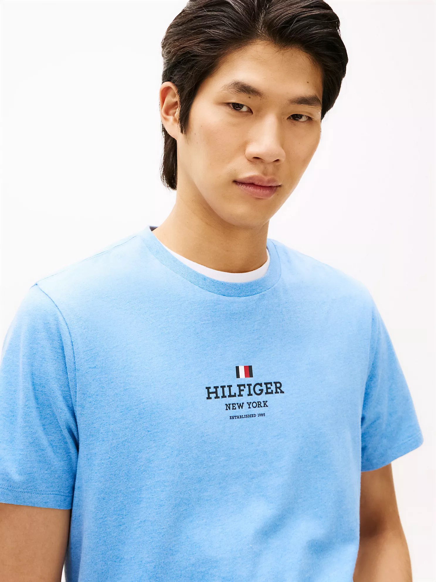 - Crewneck, short sleeves, Hilfiger NY logo.