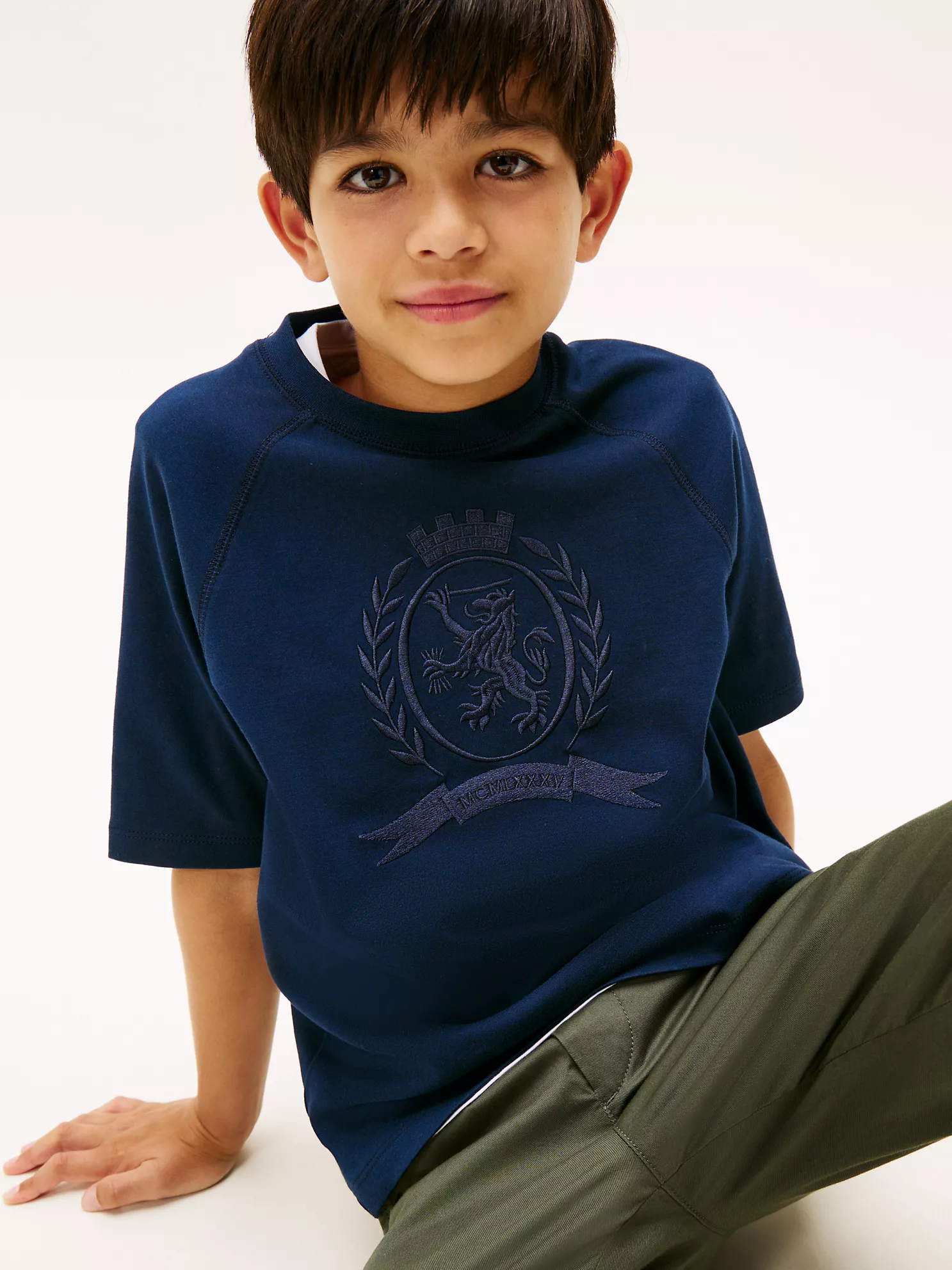 Kids’ Crest Logo T-Shirt – Dark Blue #KB09930