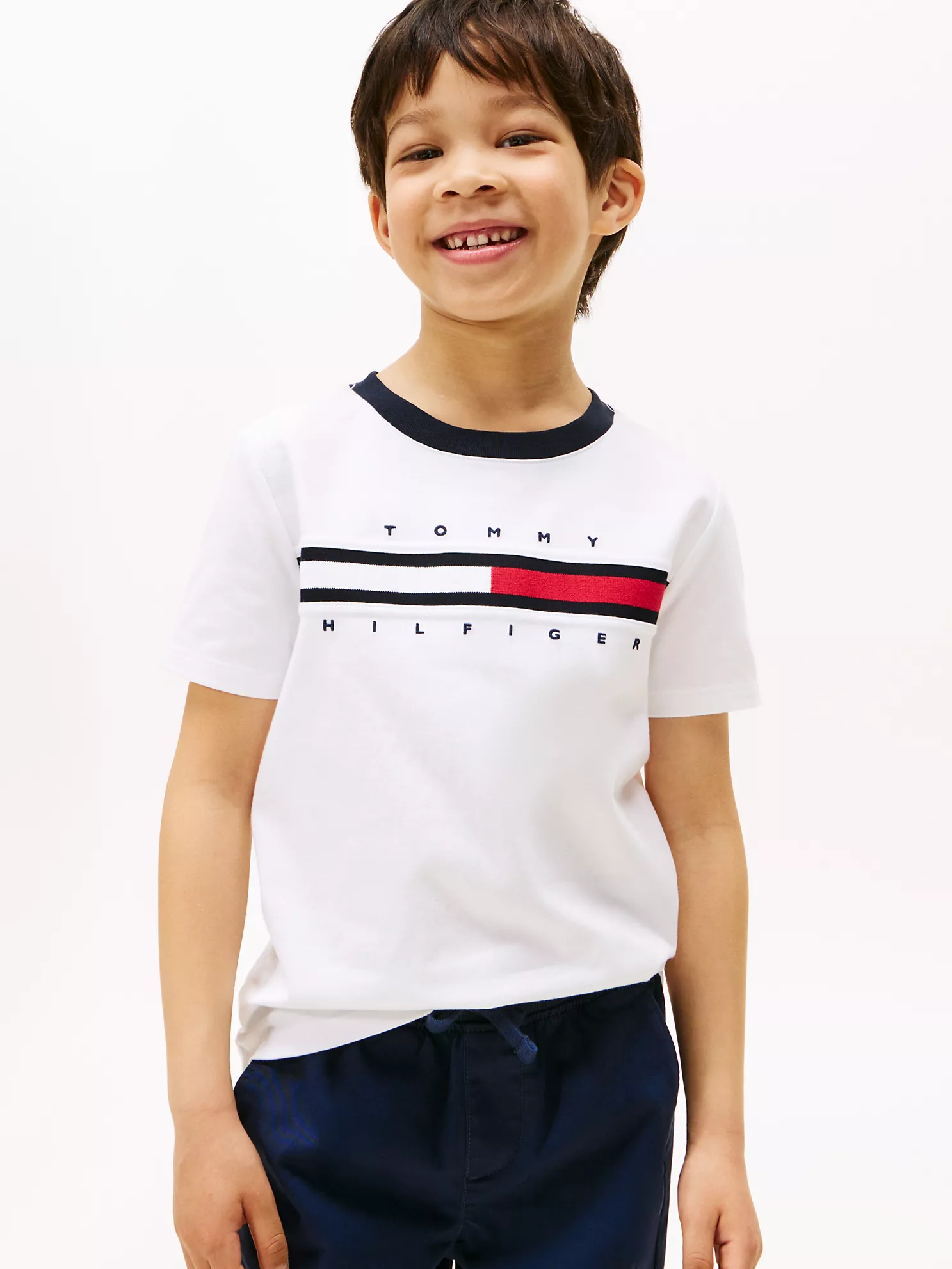 Kids’ Flag Stripe Logo T-Shirt-Optic White
