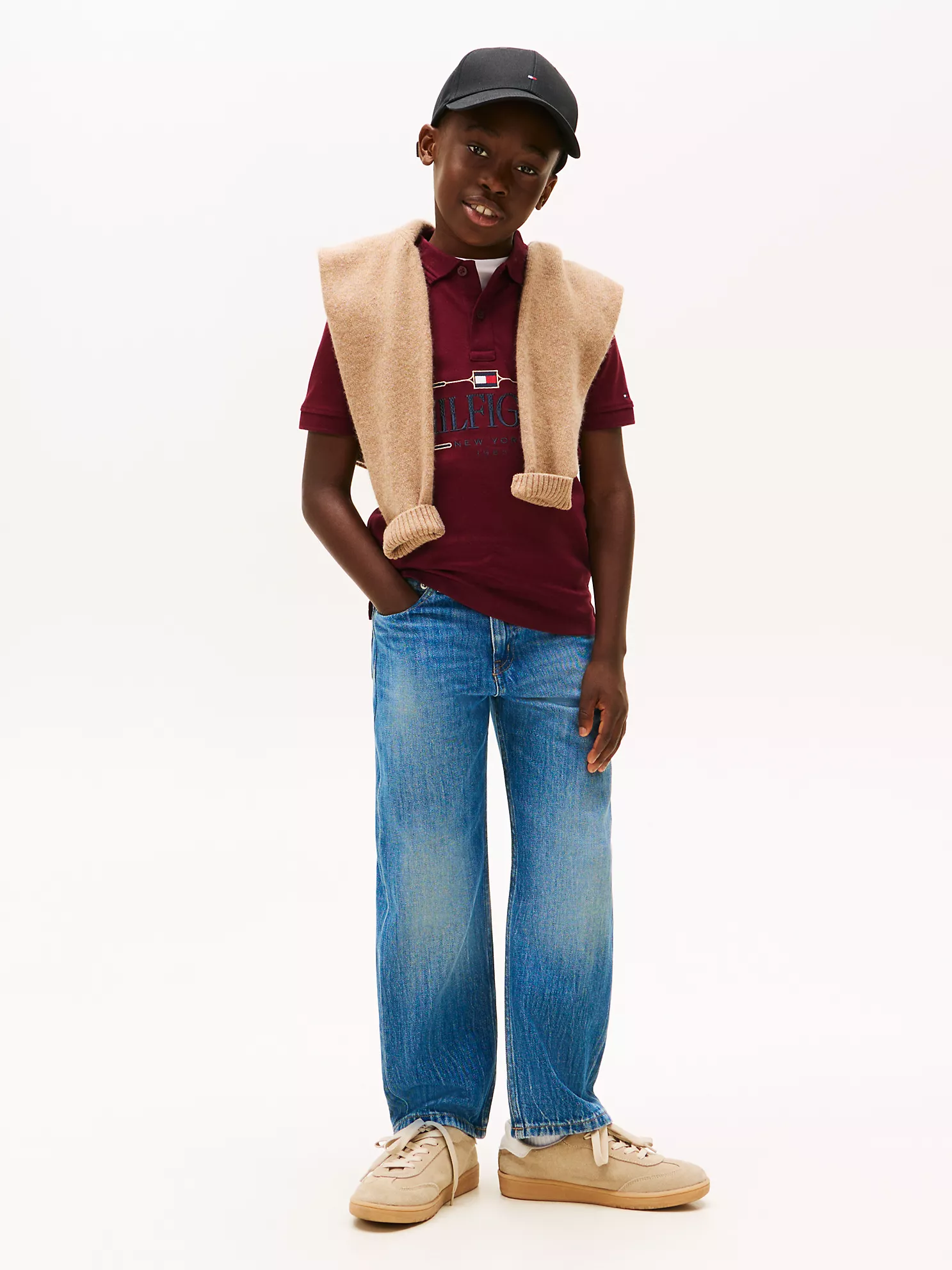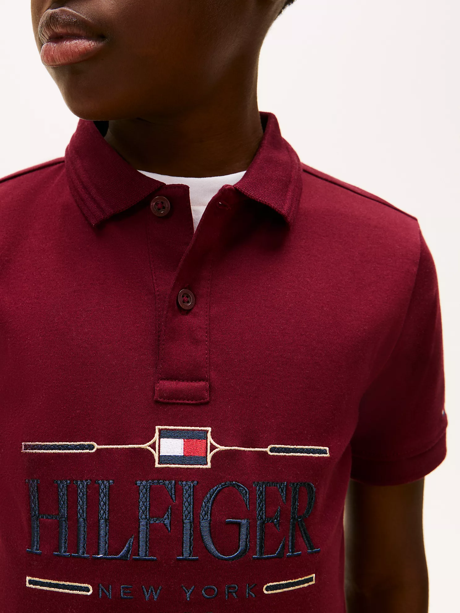 Kids’ Hilfiger Logo Interlock Polo-Deep Rouge