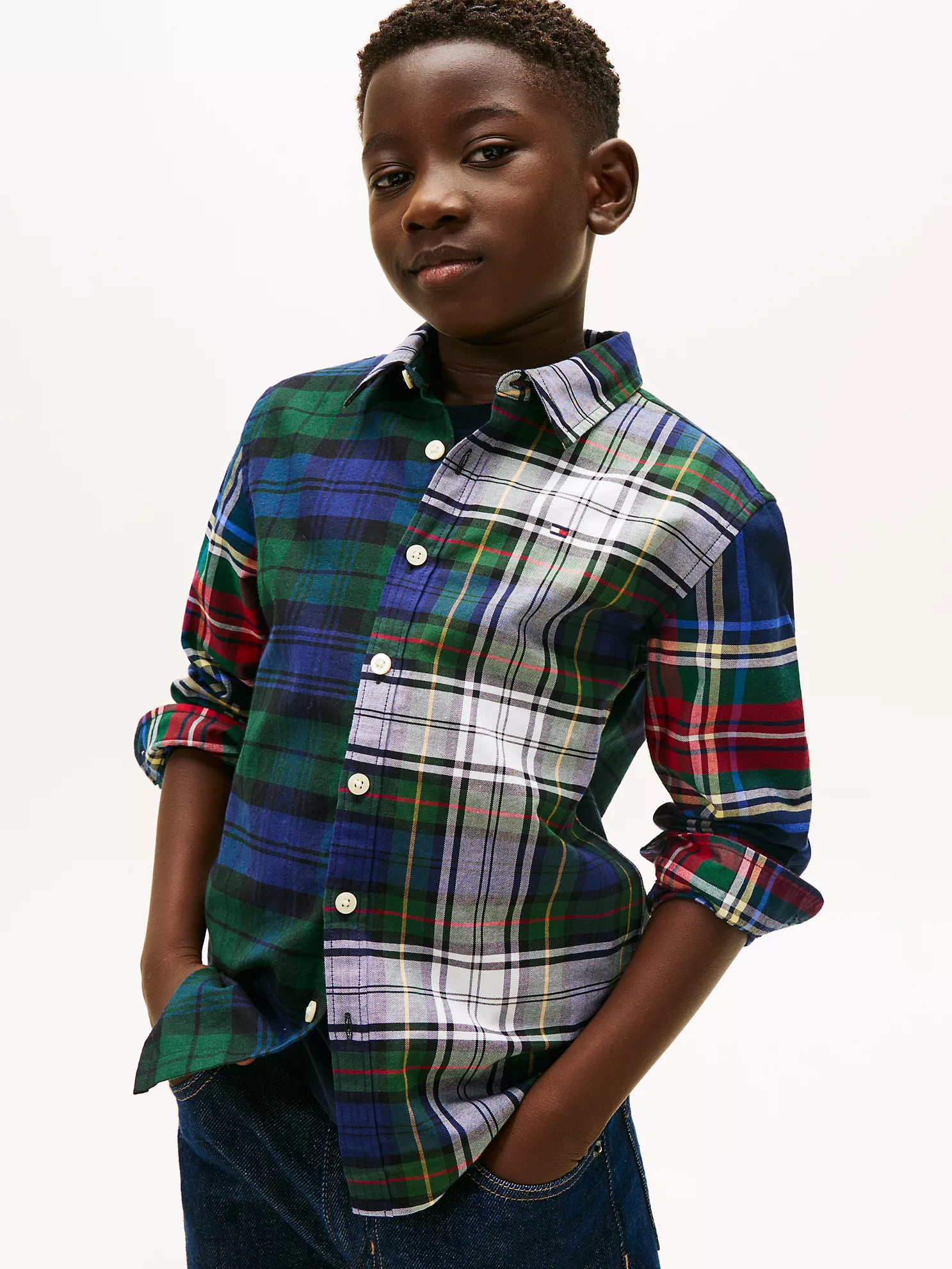 Kids’ Holiday Mixed Plaid Stretch Shirt-Carbon Navy