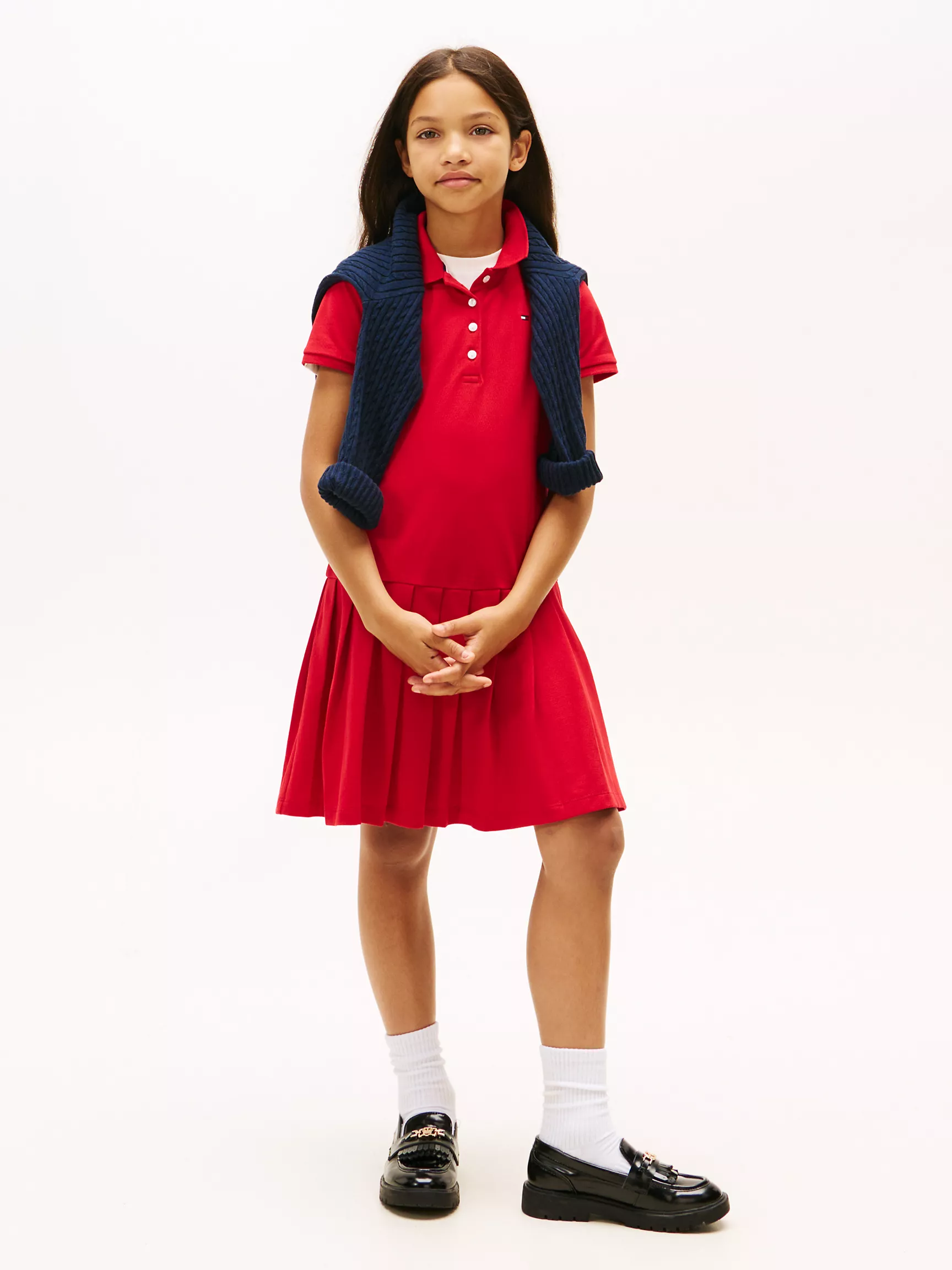 Kids’ Pleated Stretch Polo Dress-Primary Red