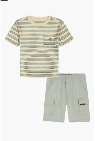 A striped T-shirt and coordinating woven shorts define this casual set that has them looking comfy from classroom days to weekend outings and anything in between.