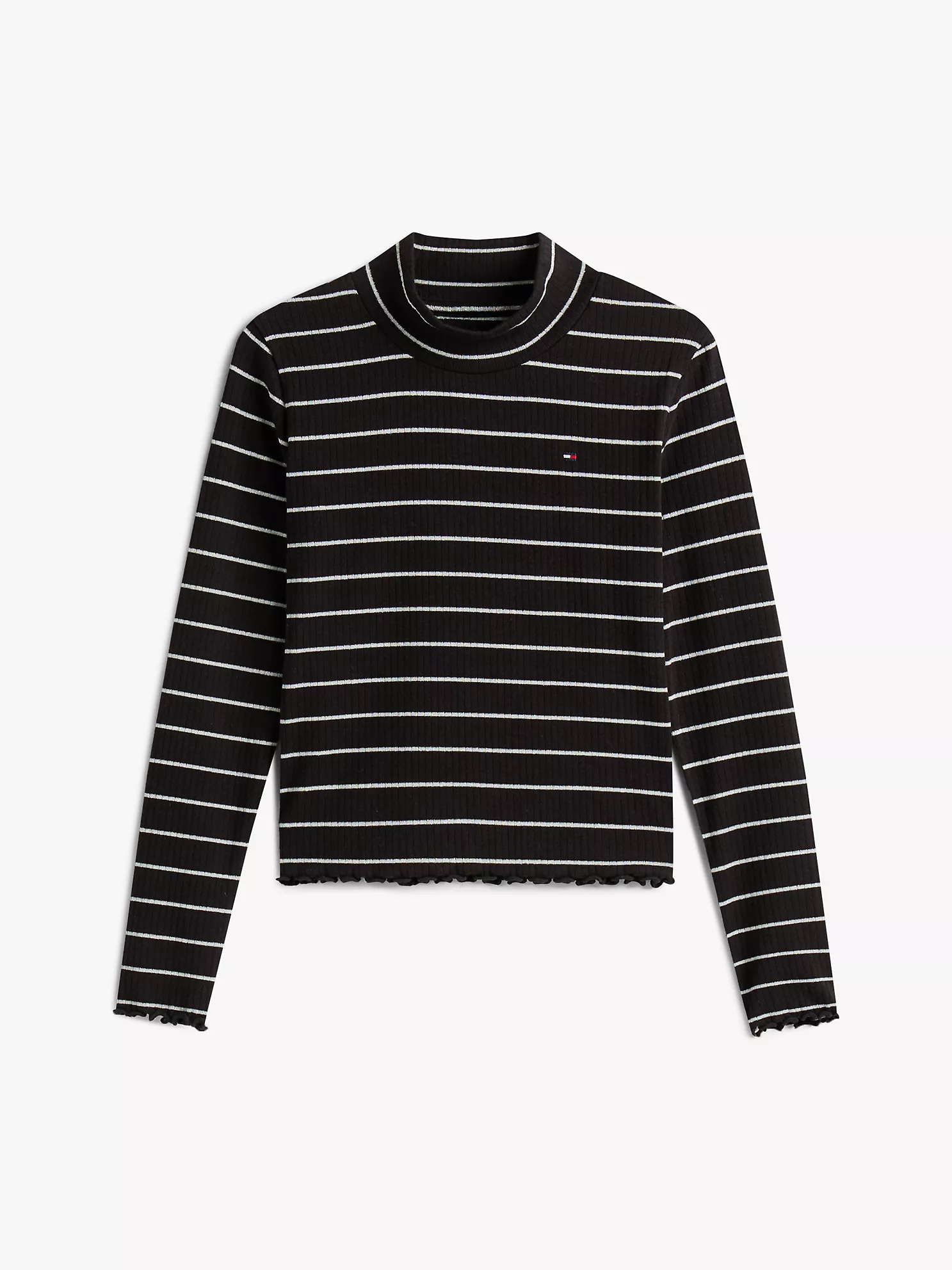 Kids’ Stripe Stretch Mockneck Top – Black #KG08867