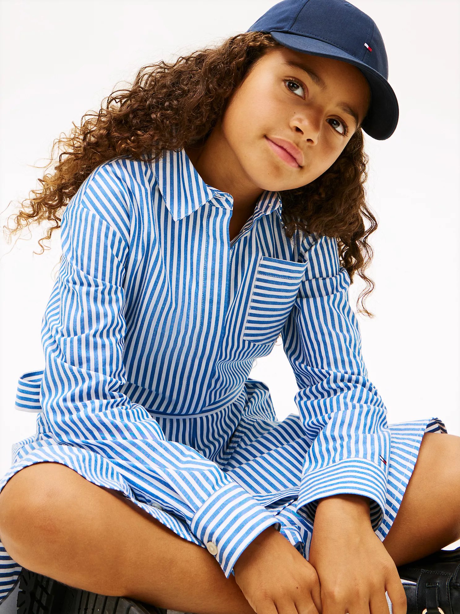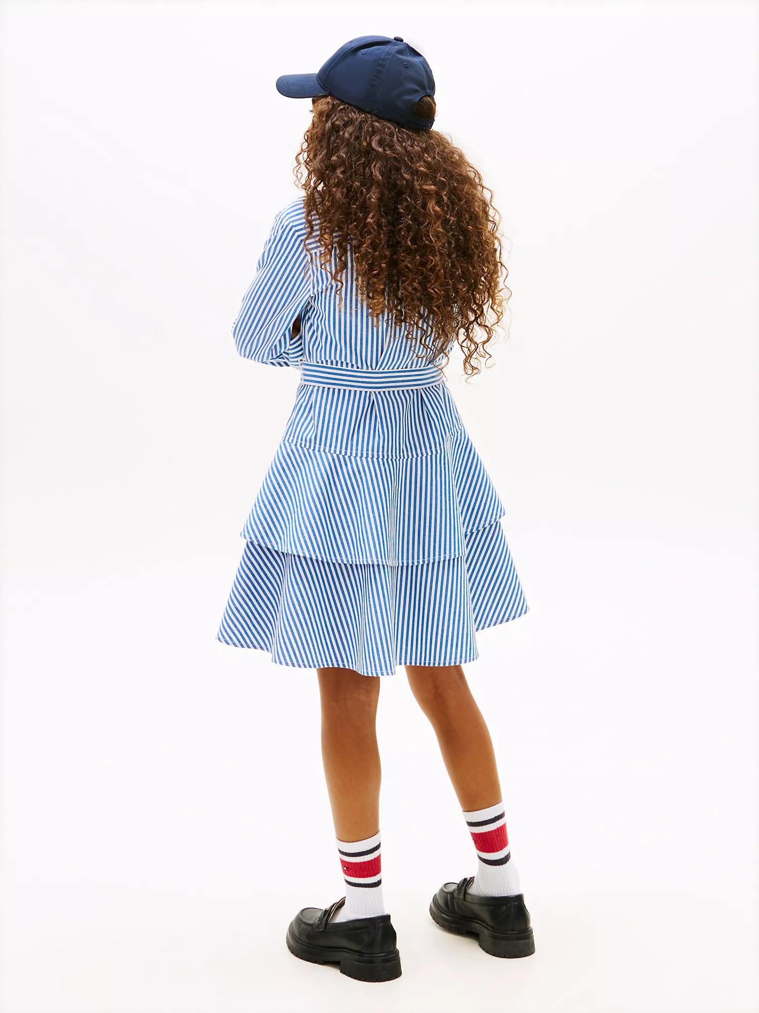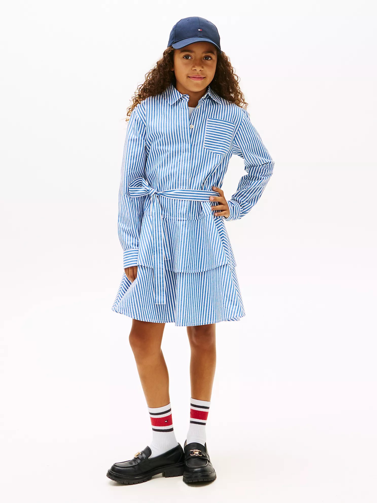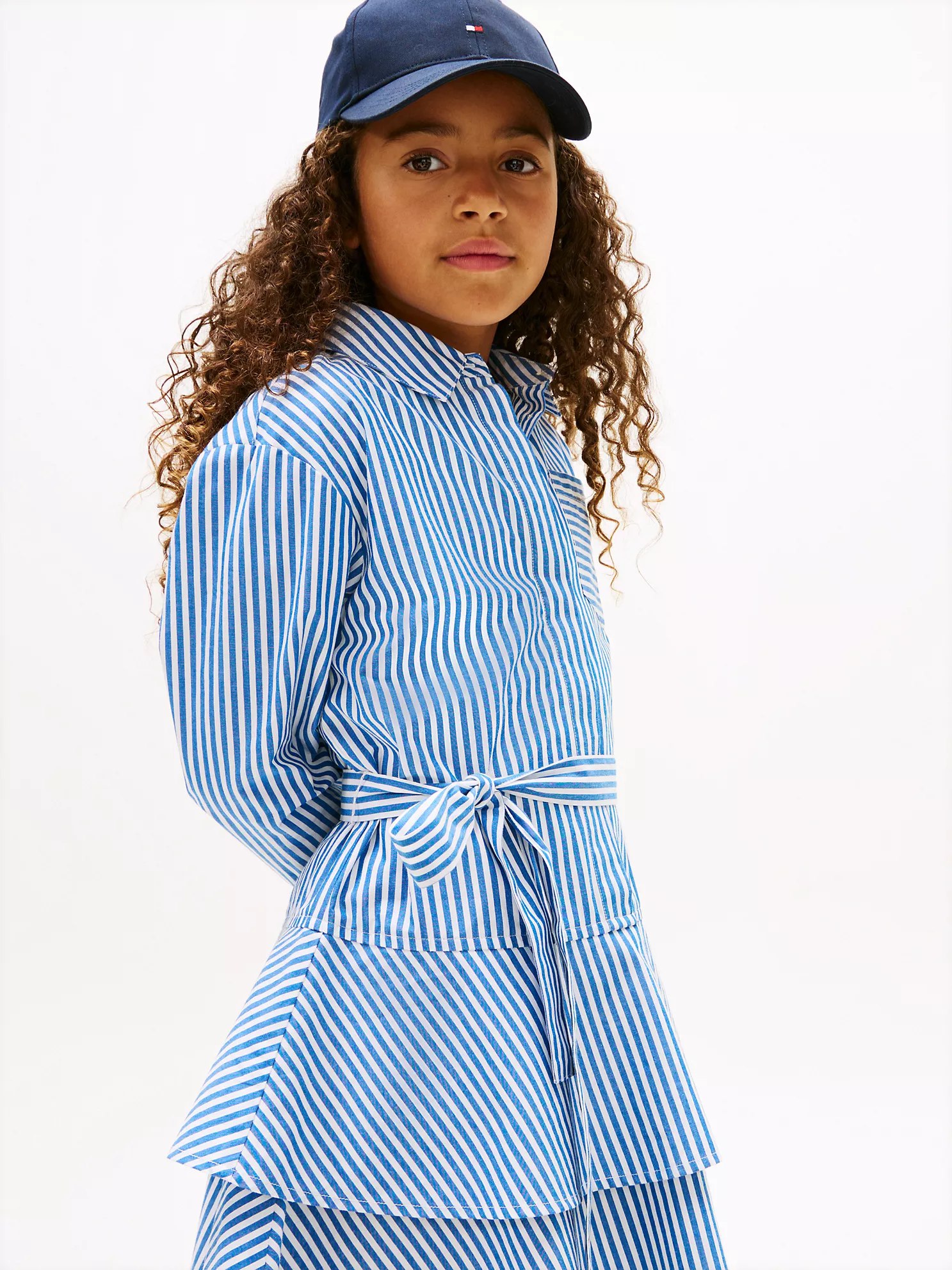 Kids’ Stripe Tiered Poplin Shirtdress-Vibrant Indigo
