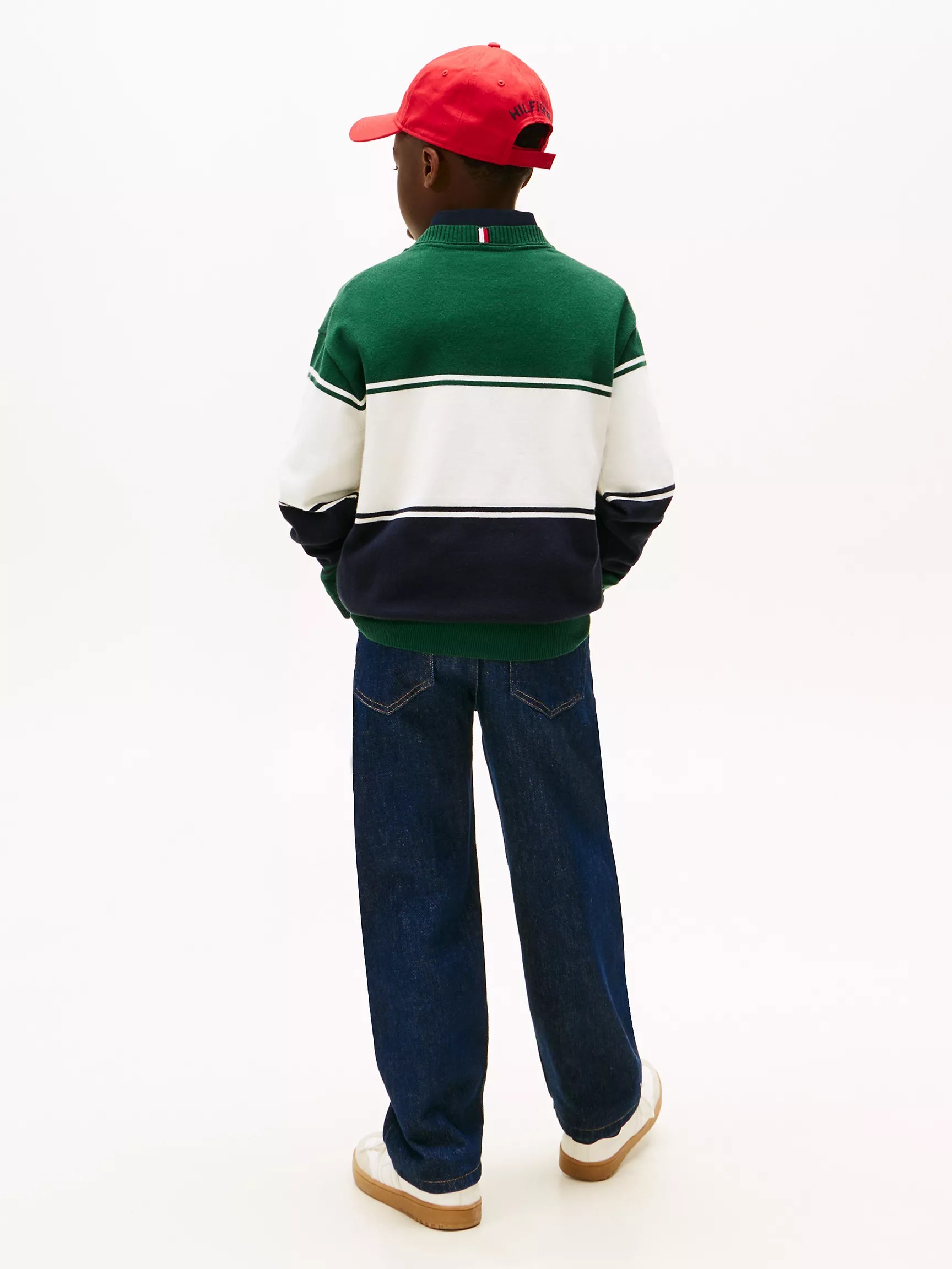 Kids’ TH Logo Colorblock Sweater-Ornamental Green#XB01491-L6K