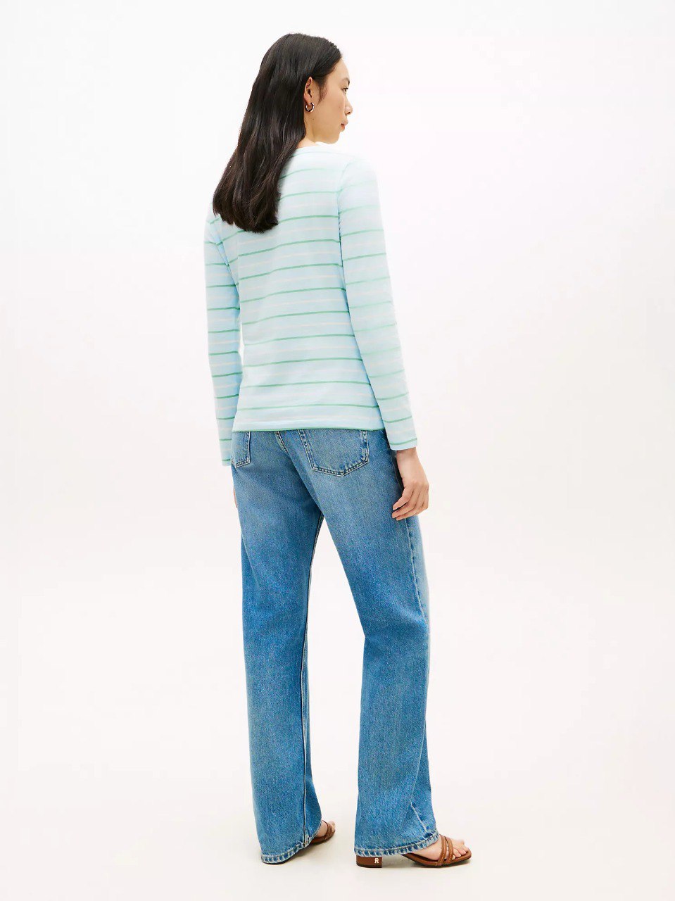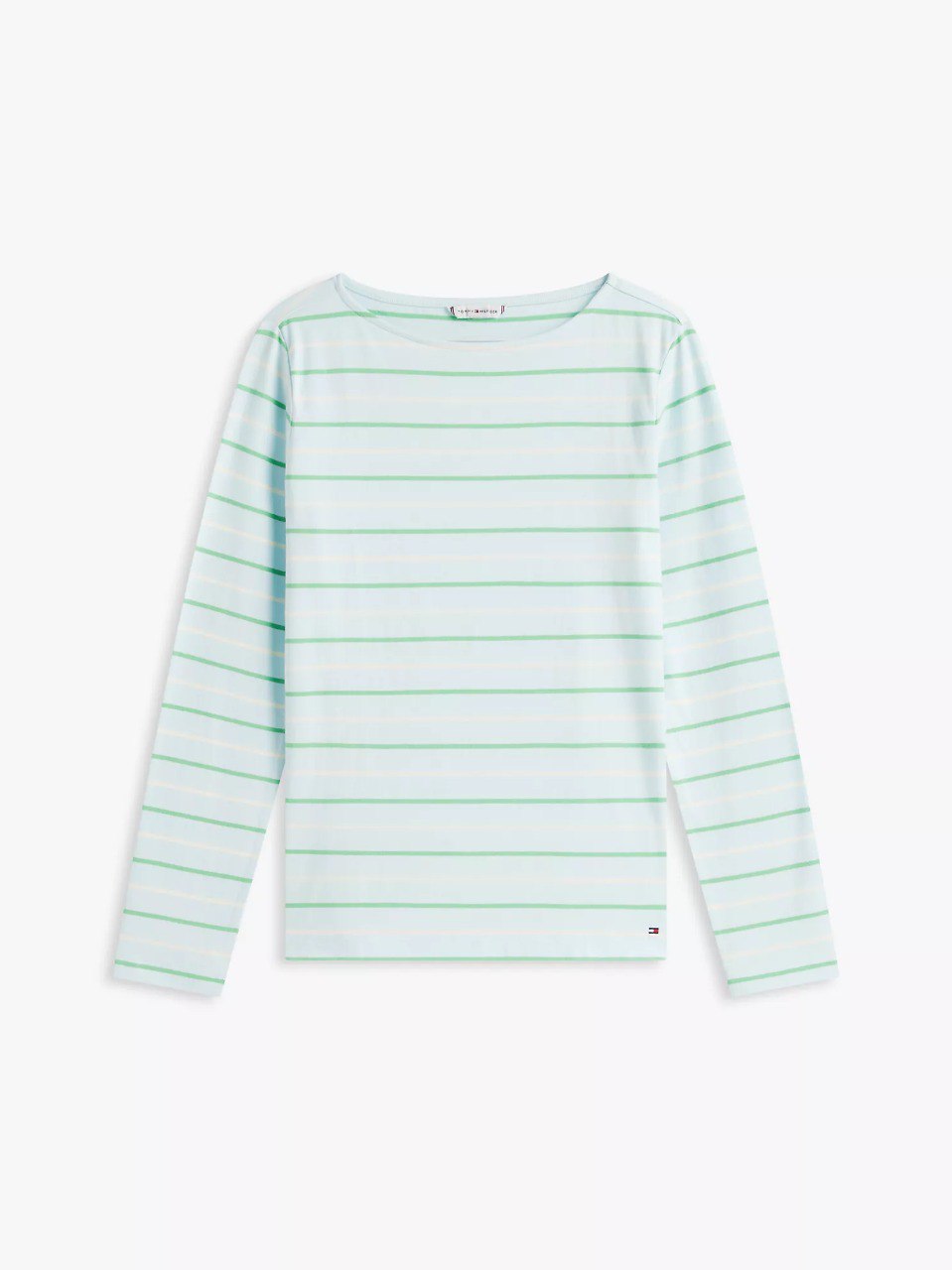 Tommy Hilfiger women’s T-shirt. Made from a premium cotton blend, this long-sleeve tee is designed in a boatneck silhouette. Lightweight, stretchy and breathable, itโ€™s an effortless essential for everyday wear.