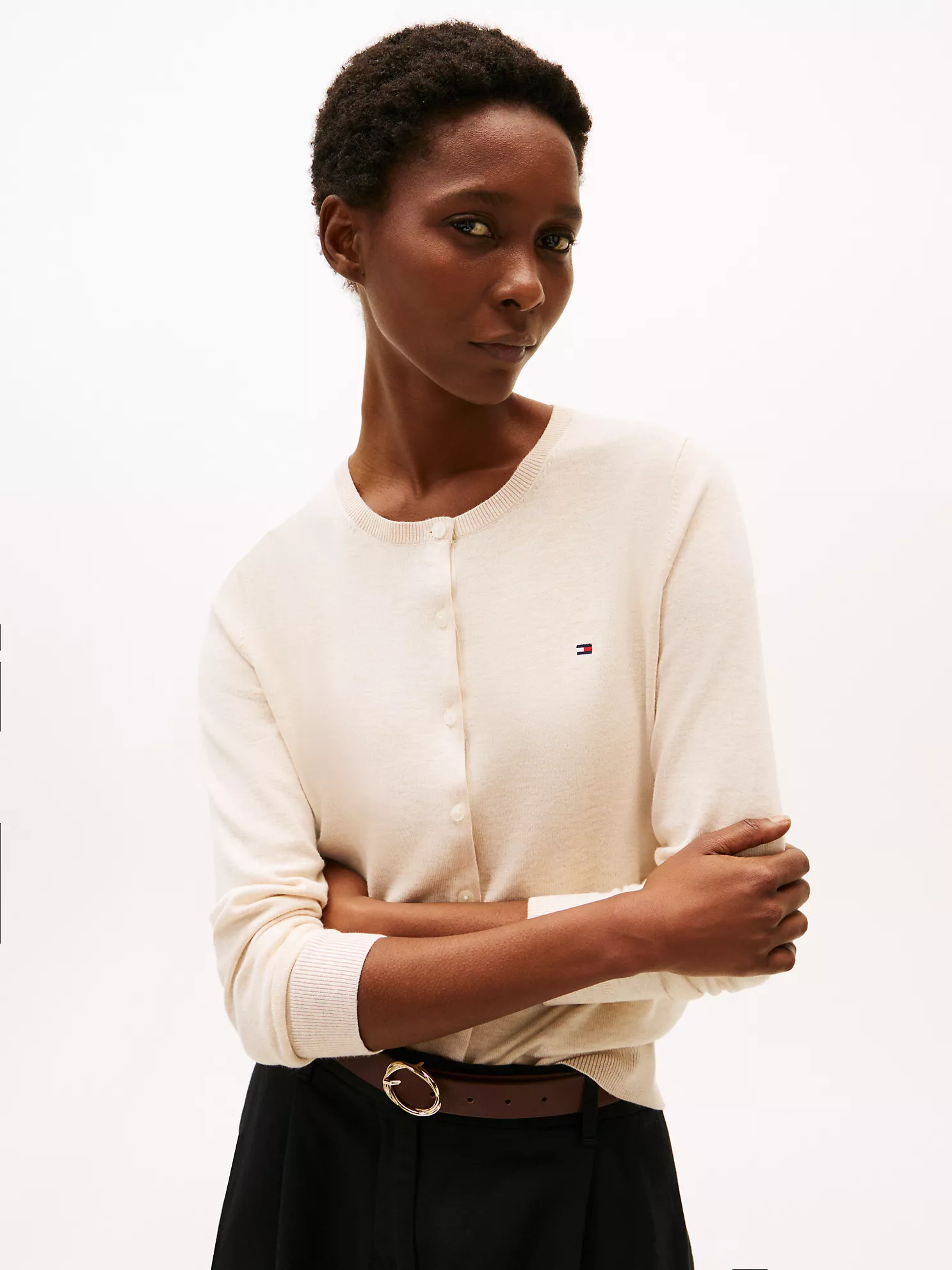 Tommy Hilfiger women’s sweater. Made from a viscose blend, this light-as-air cardigan is a flattering, versatile layer. Keep a few in your wardrobe so you always have one on hand.