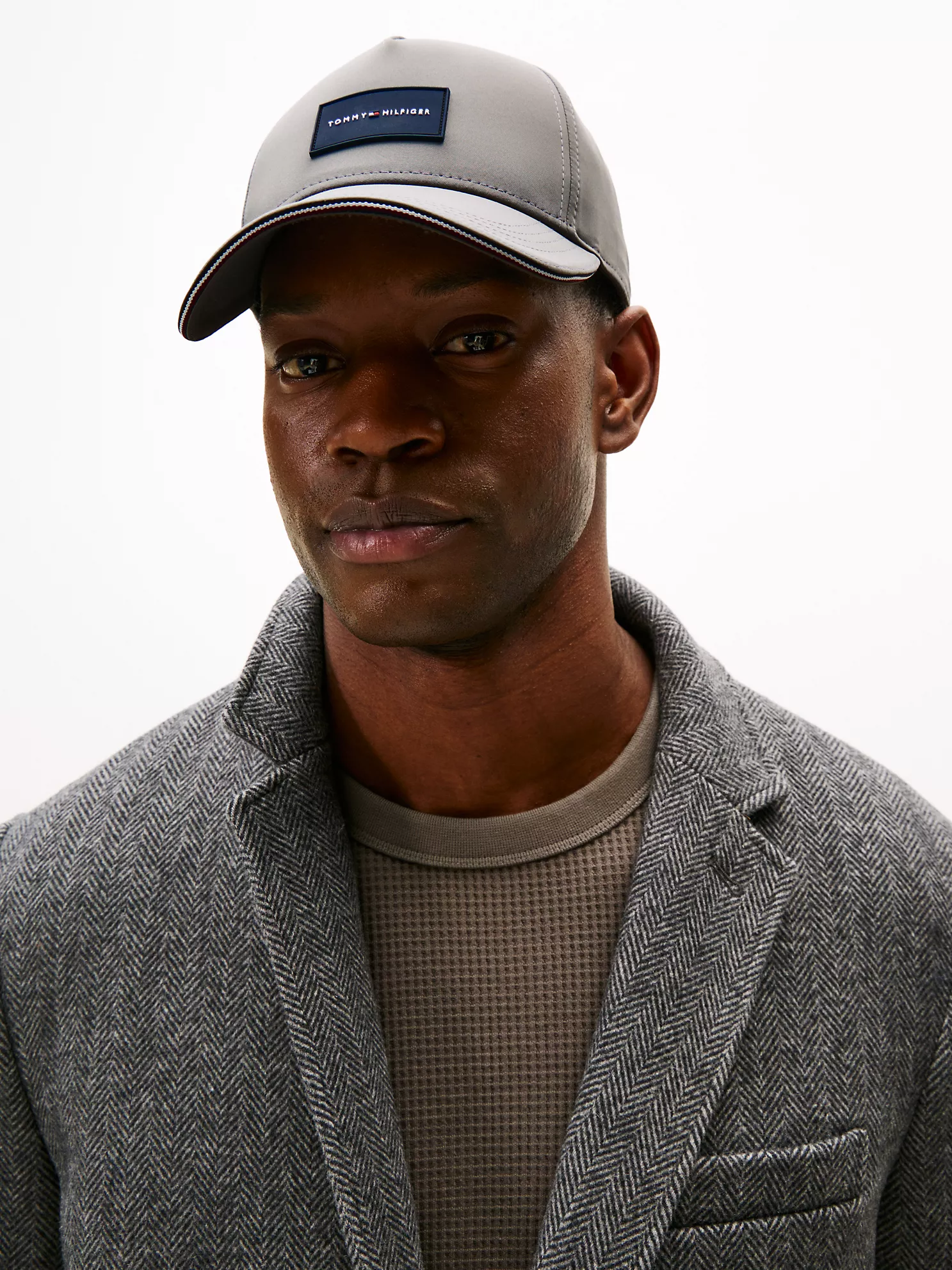 Tommy Hilfiger men’s hat. This classic cap is designed with understated stitching and a silicone logo patch front and center, making it a versatile topper to all your athleisure outfits.