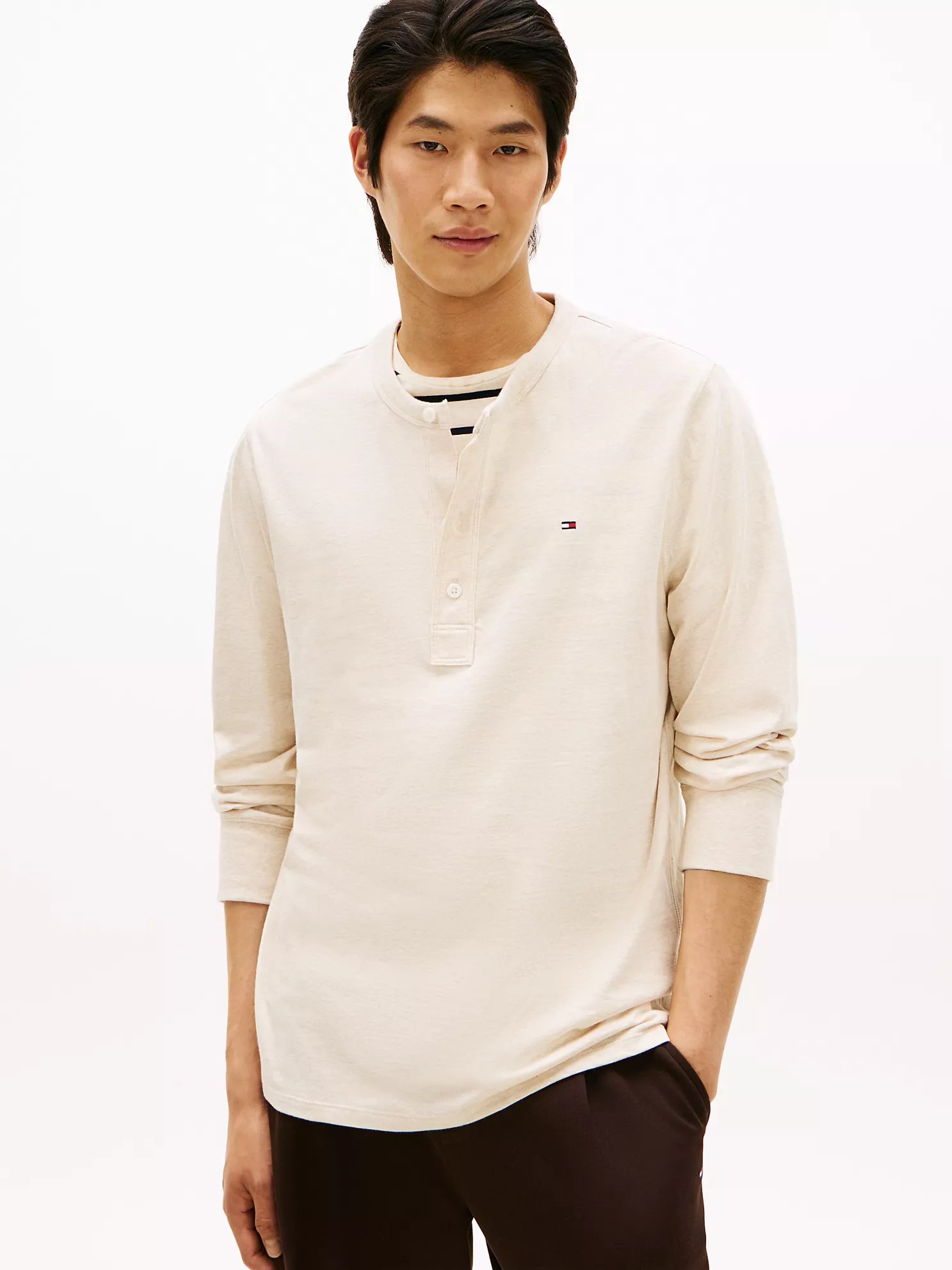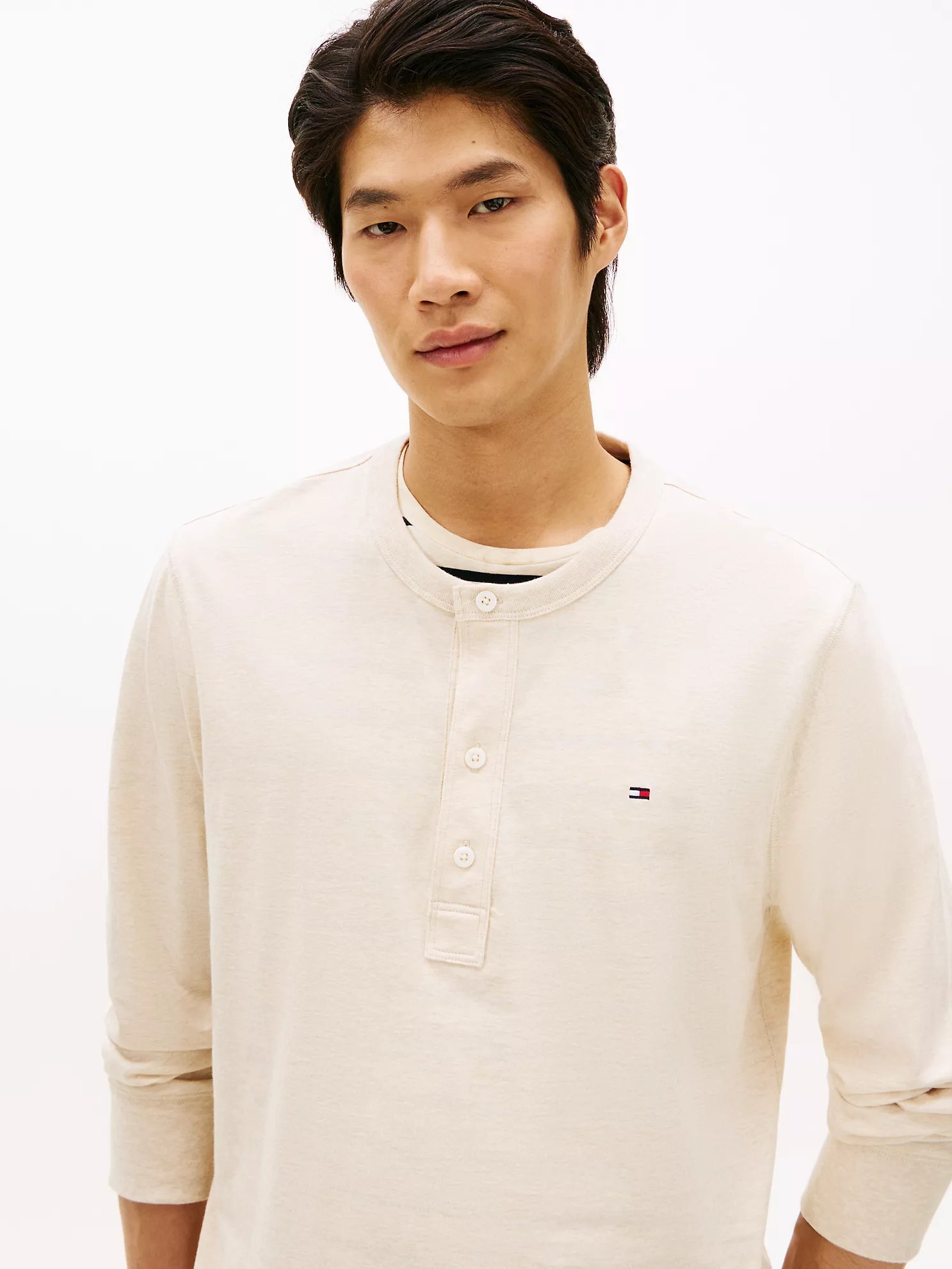 Tommy Hilfiger men’s T-shirt. An off-duty wardrobe staple, our Henley tee is made from a cotton-jersey knit with a smooth, soft feel and excellent stretch.