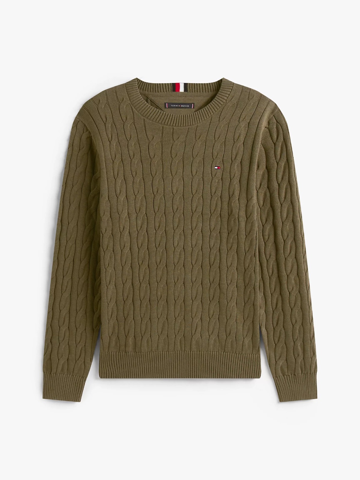 Tommy Hilfiger men’s sweater. A timeless piece for your new-season wardrobe — the cable knit crewneck sweater made from soft cotton and ready-made for layering.