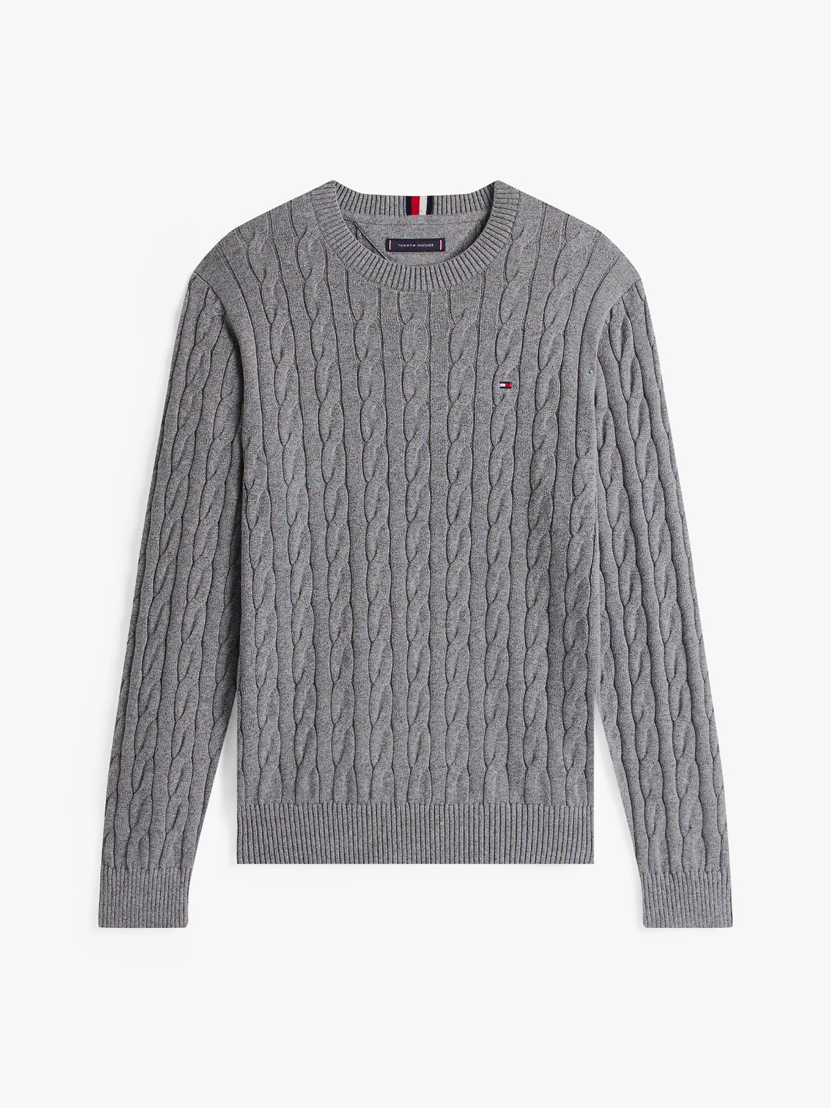 Tommy Hilfiger men’s sweater. A timeless piece for your new-season wardrobe — the cable knit crewneck sweater made from soft cotton and ready-made for layering.