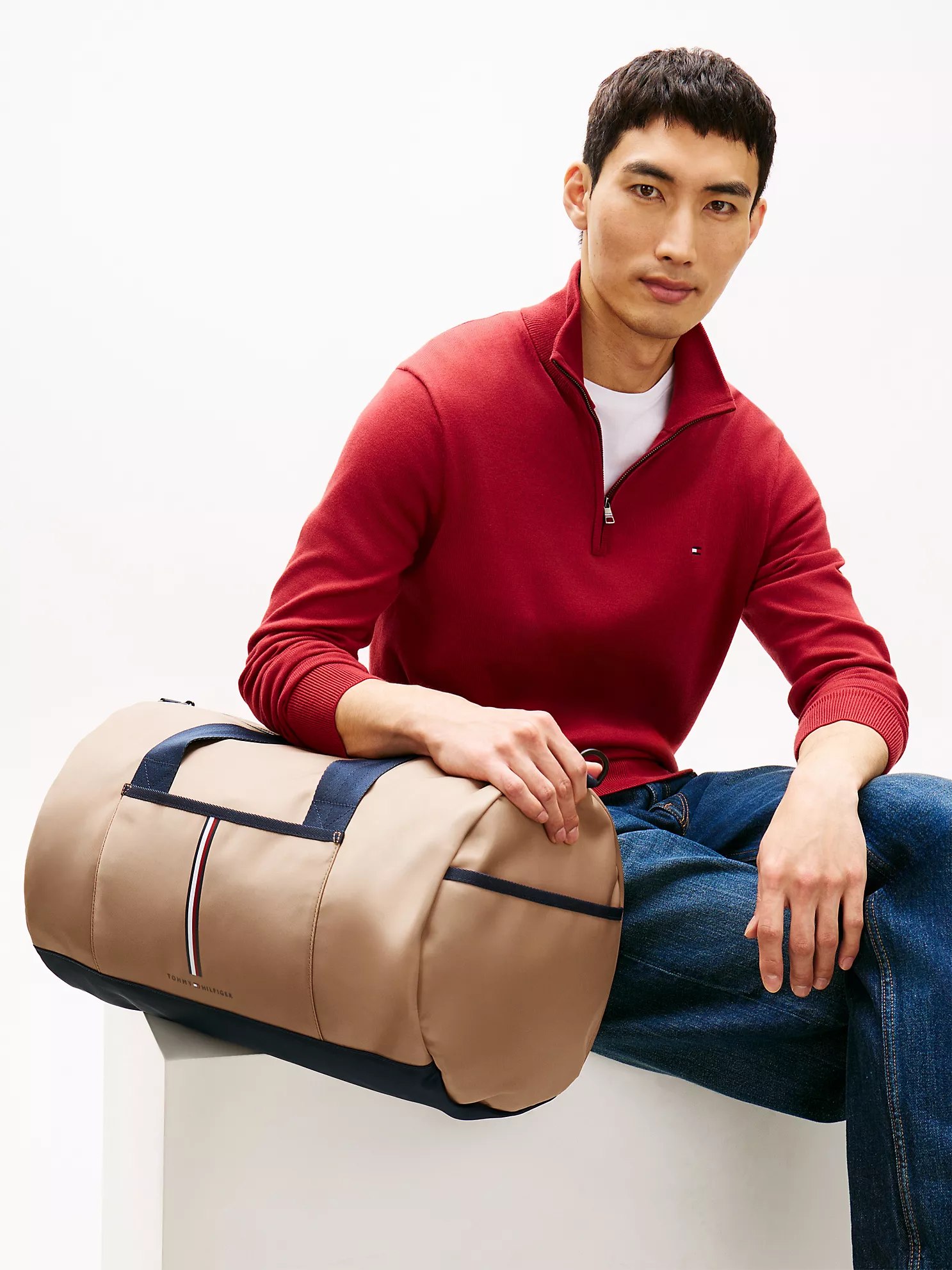 Tommy Hilfiger men’s bag. Our sturdy duffle features a no-fuss open interior to tote your essentials to the gym, on a weekend jaunt or wherever the day may take you. Made from a durable twill weave, it’s built to take whatever the day throws at you.