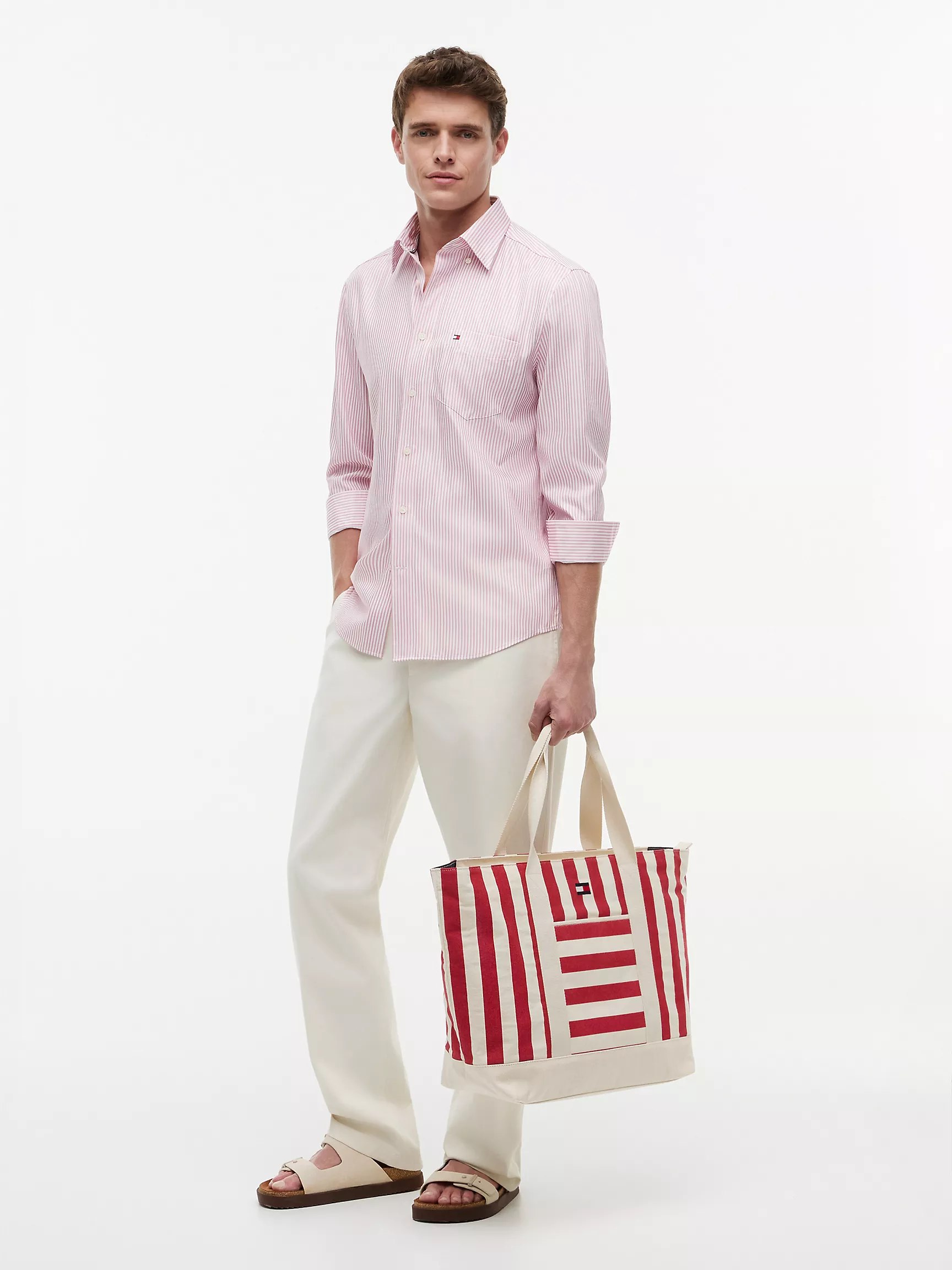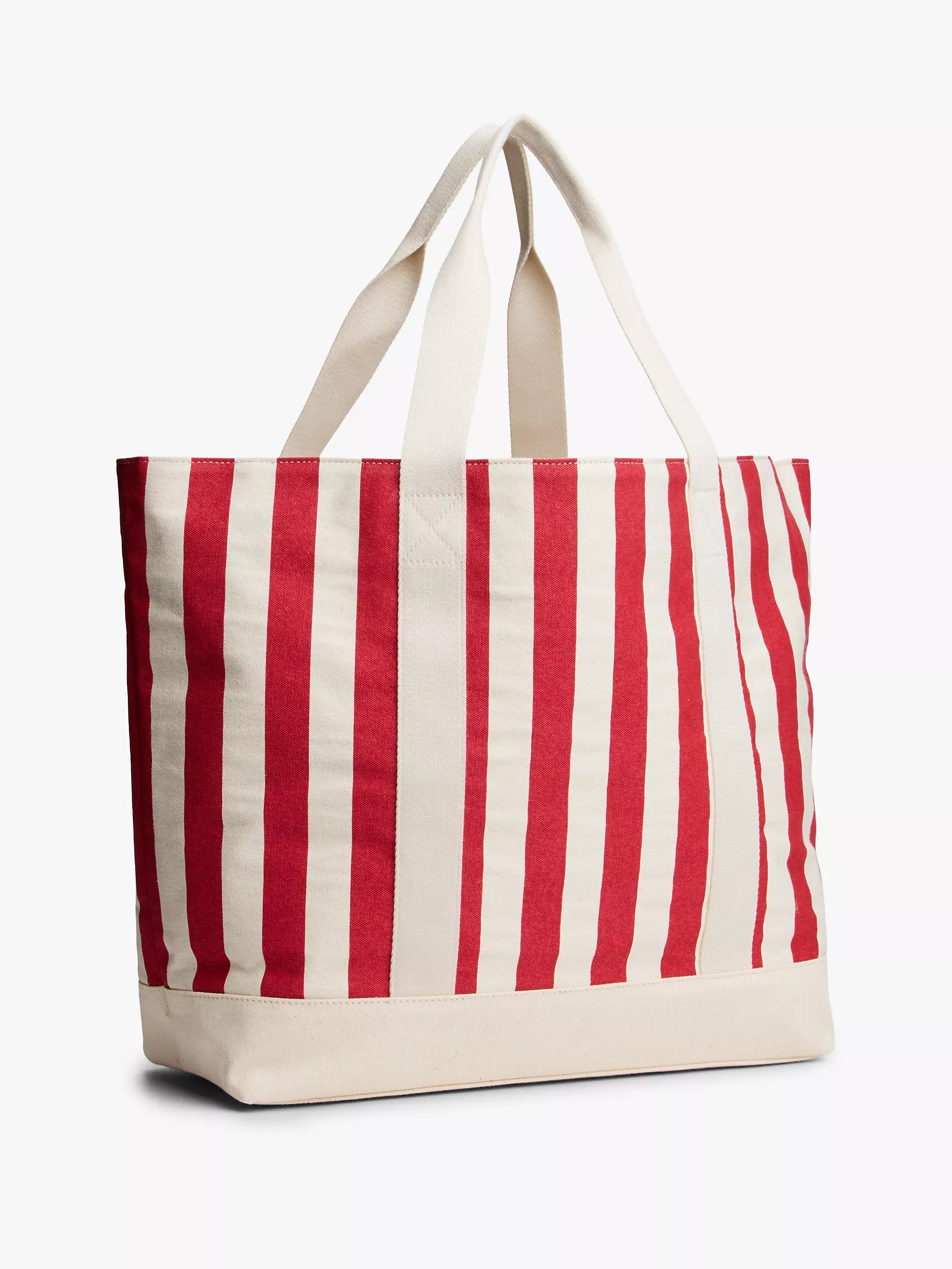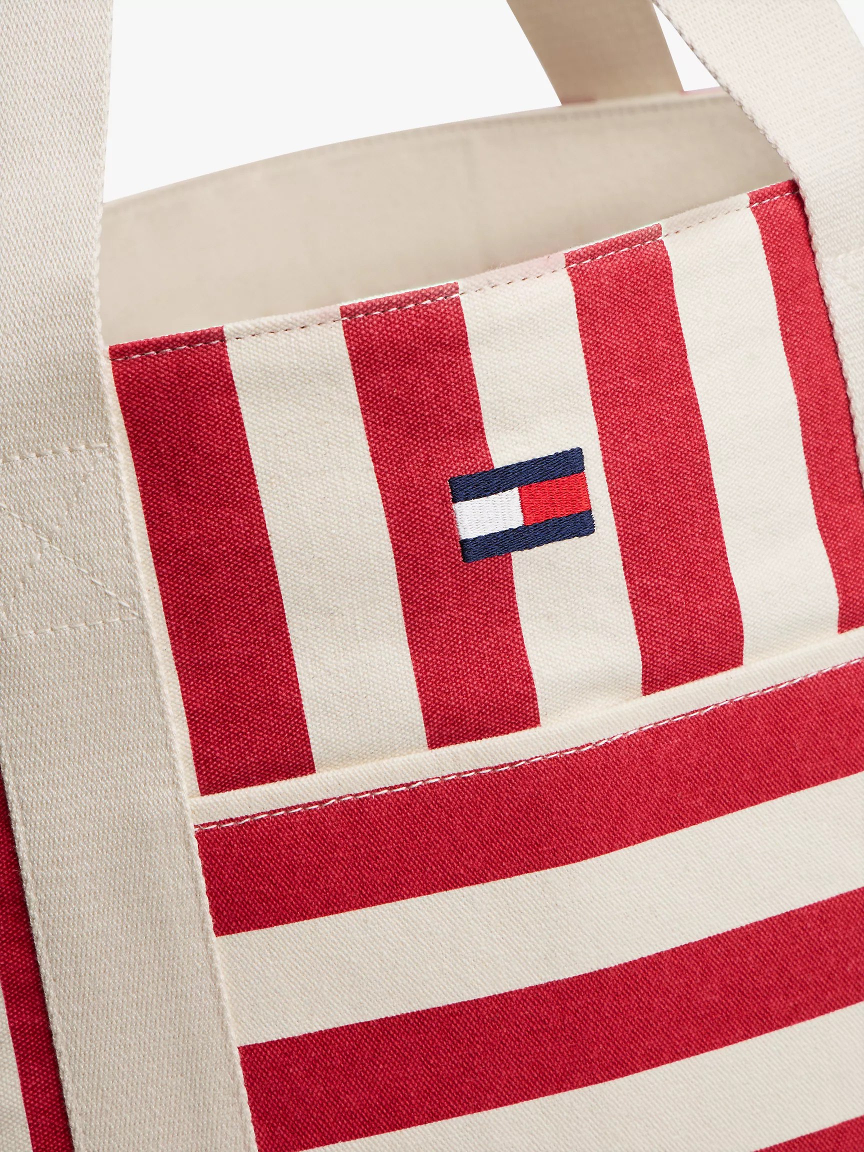 Tommy Hilfiger unisex bag. The ideal companion for your next adventure, this durable canvas tote bag has a roomy main compartment and multiple pockets for your essentials. Finished with vertical and horizontal stripes, it offers a touch of nautical flair.