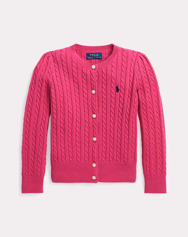 Mini-Cable Cotton Cardigan Baby/Toddler/Kids Girls- Preppy Pink