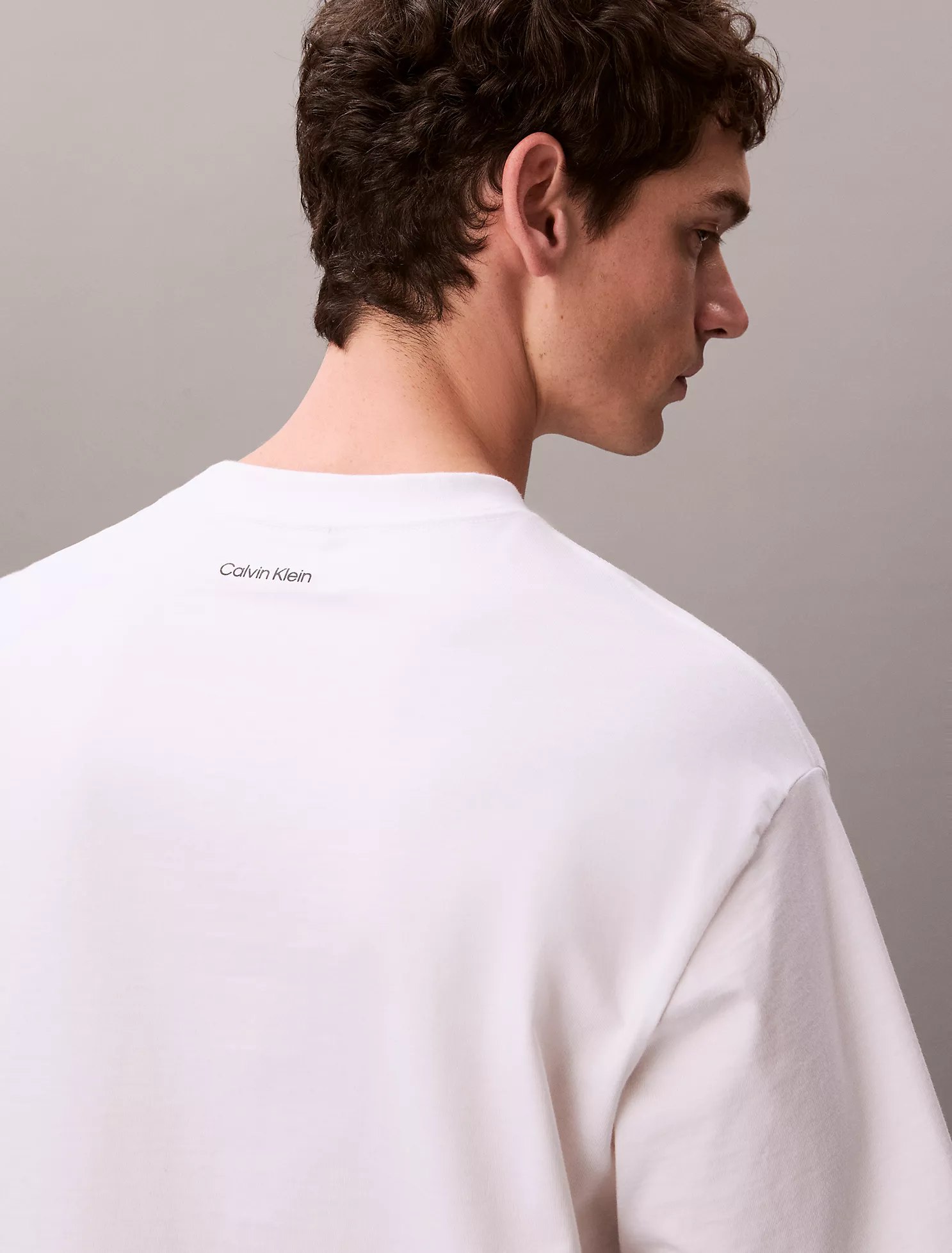A relaxed t-shirt printed with a Calvin Klein logo graphic at the front. Made from 100% cotton for soft, breathable comfort. Designed with short sleeves and a crewneck.
