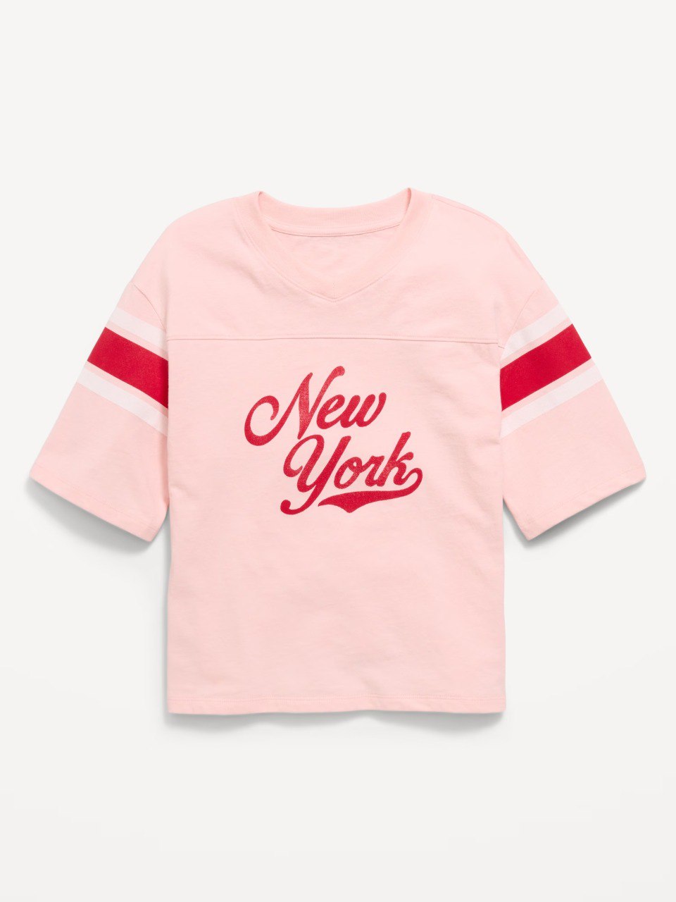 Oversized Football-Style T-Shirt for Girls-Red 07