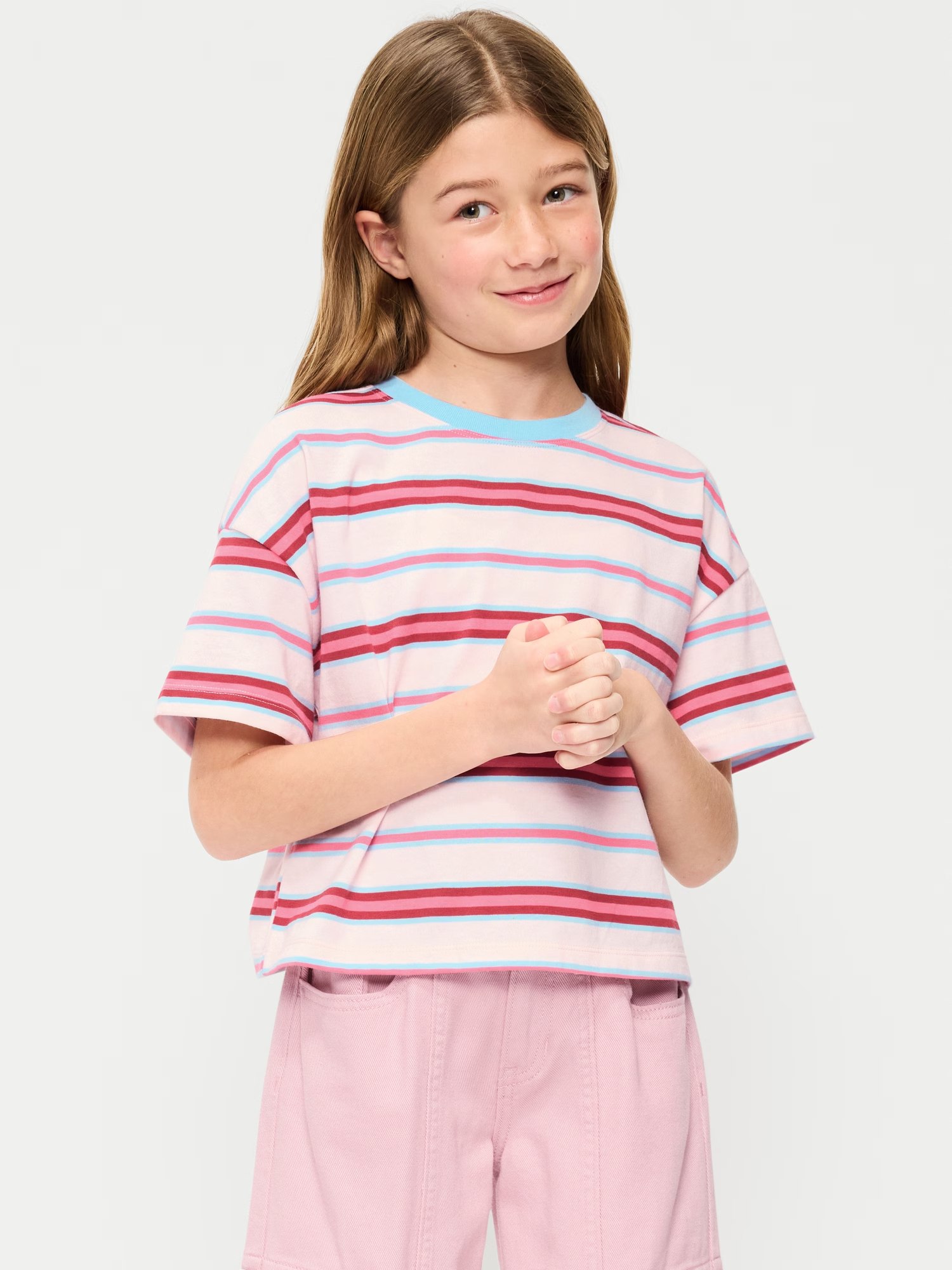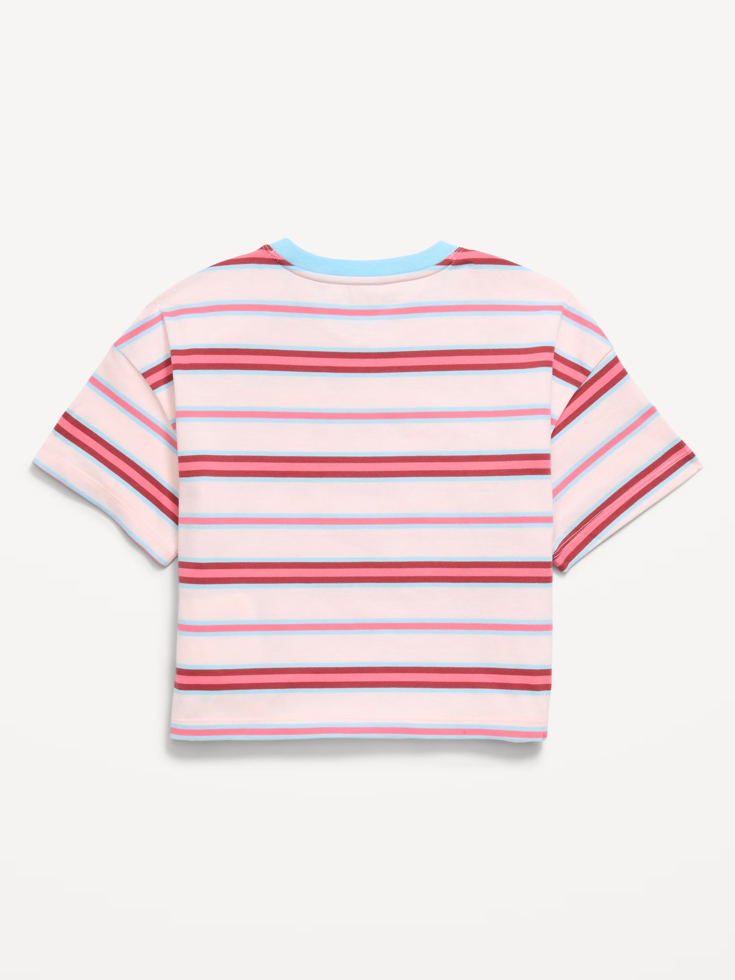 Oversized Short-Sleeve Cropped T-Shirt for Girls-Pink Stripe