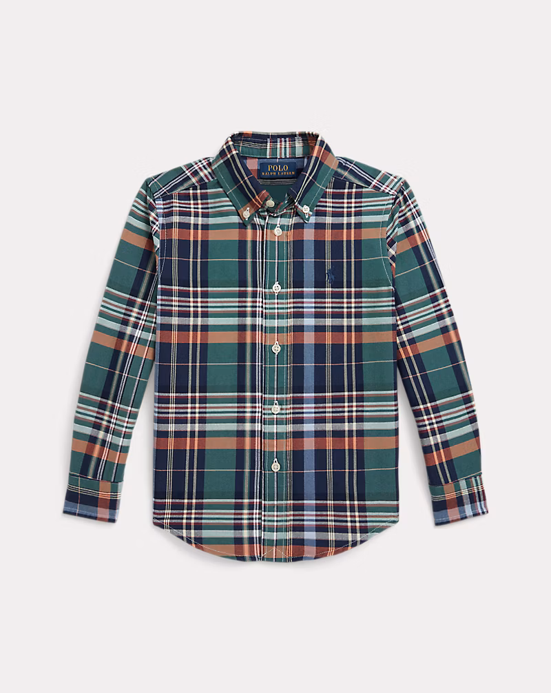 Plaid Cotton Oxford Shirt Toddler/Kids Boys – Green Navy Multi #100063487