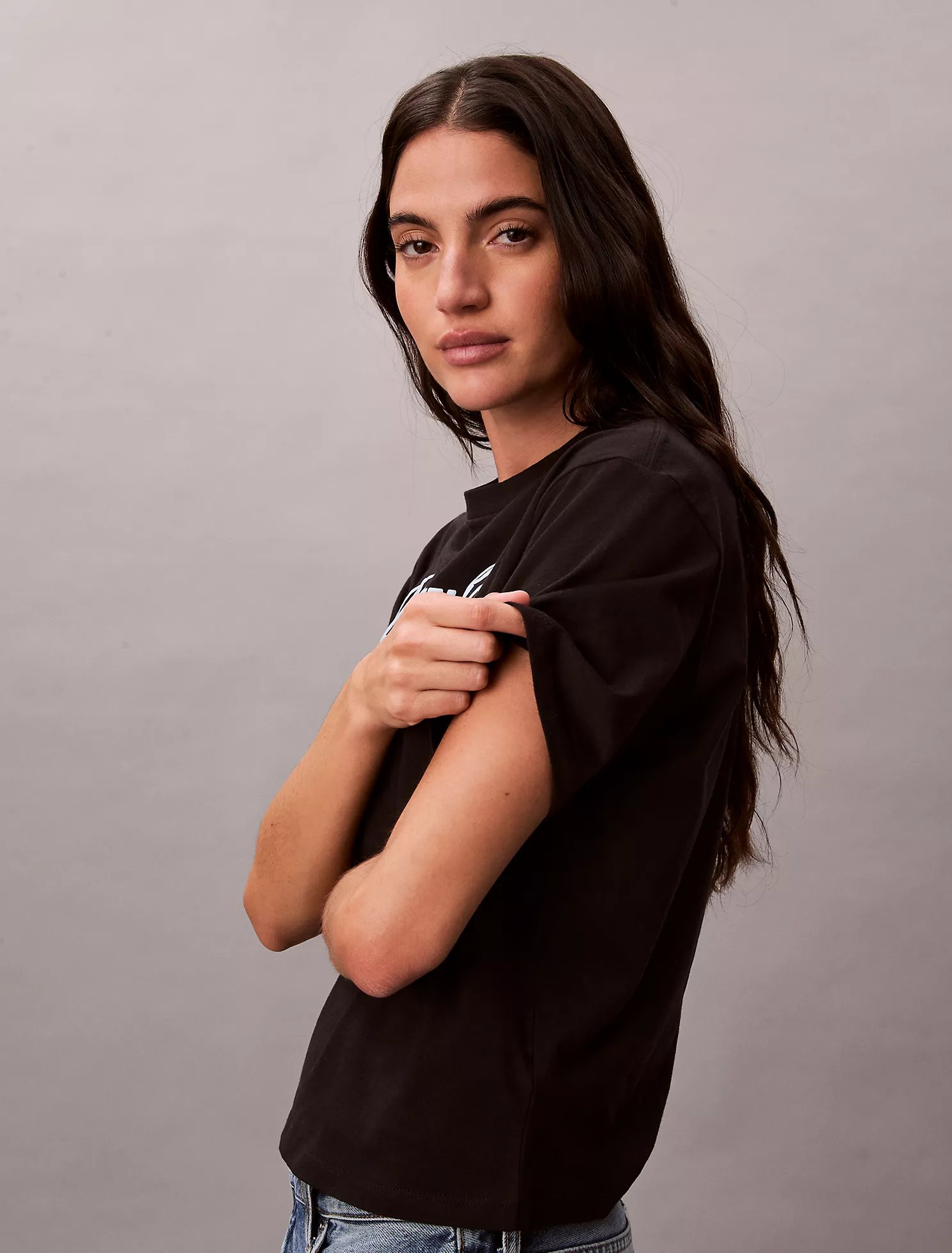 A boxy t-shirt printed with a logo graphic at the front. Made from 100% cotton for soft, breathable comfort. Designed with short sleeves and a crewneck.