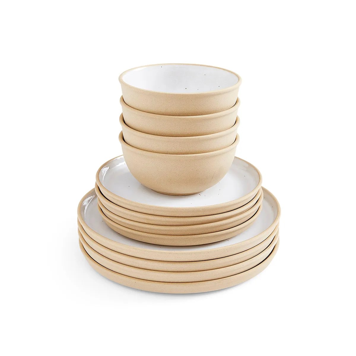 Made to love and made to last, this Minerals moonstone 12-piece set has been thoughtfully crafted in Portugal from organic clay. The once-fired stoneware dinner plates, side plates and medium bowls in this set are coated on the inside with a reactive glaze in a beautiful moonstone colourway, leaving the underside of each piece wonderfully textured. A dinner set full of distinct characteristics creates one-of-a-kind pieces for your home.