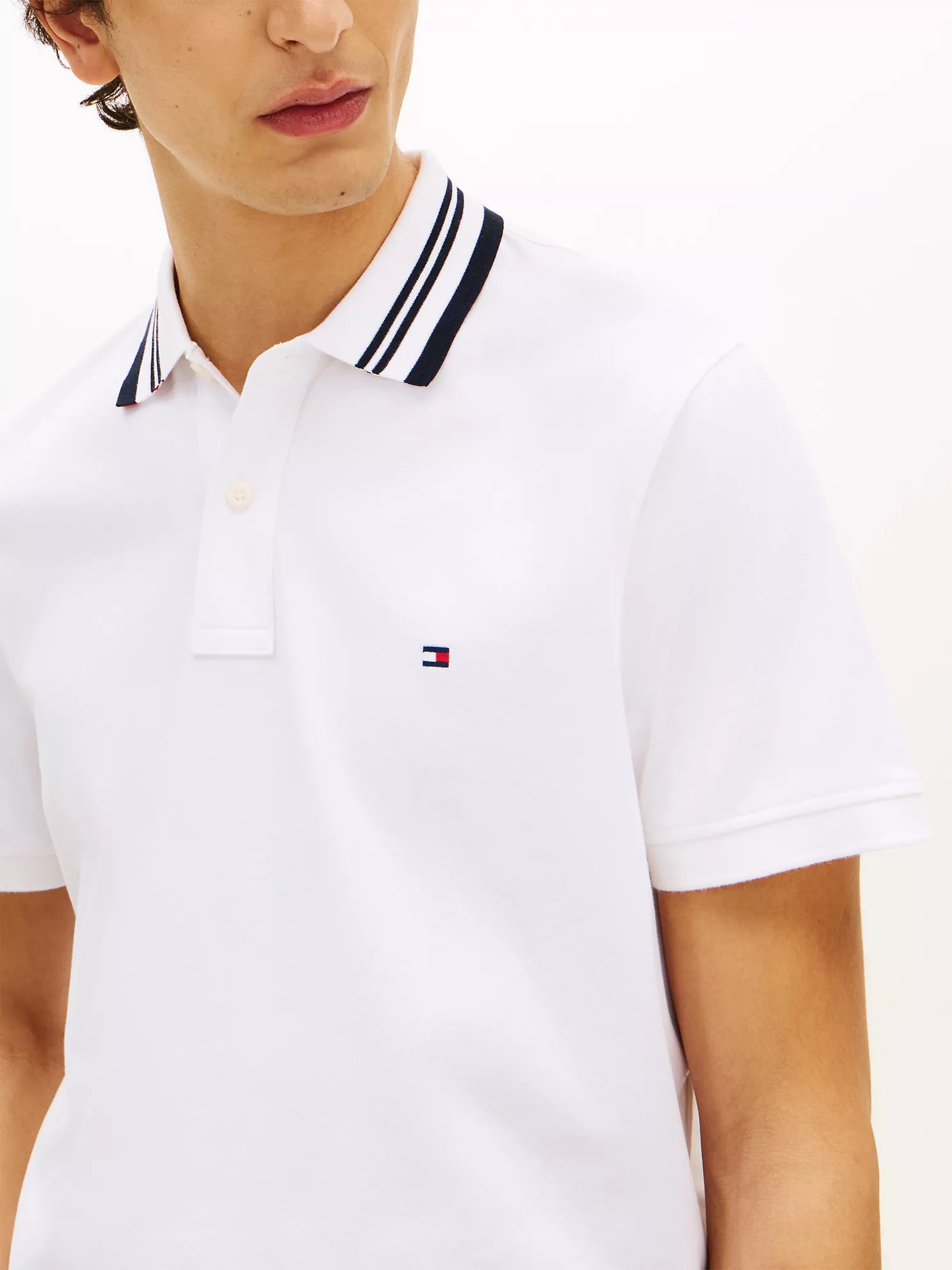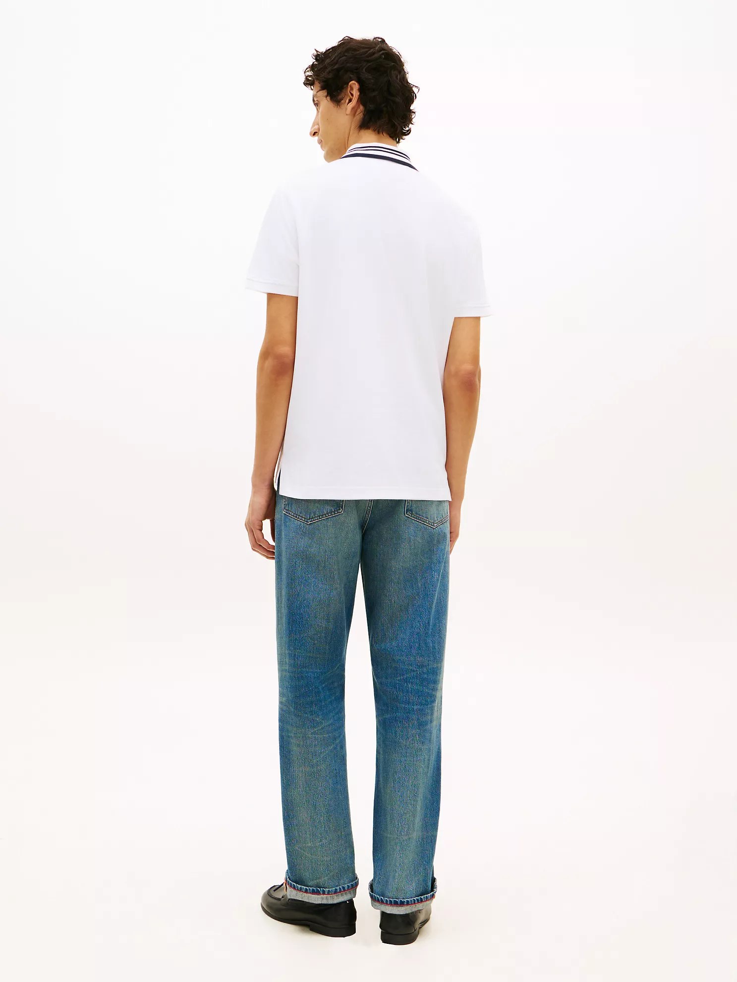 Tommy Hilfiger men’s polo. Ideal for the office, our short-sleeve polo is made in a textured jacquard weave with stretch for comfort. Finished with tipping at the collar, it has a classic preppy feel.
