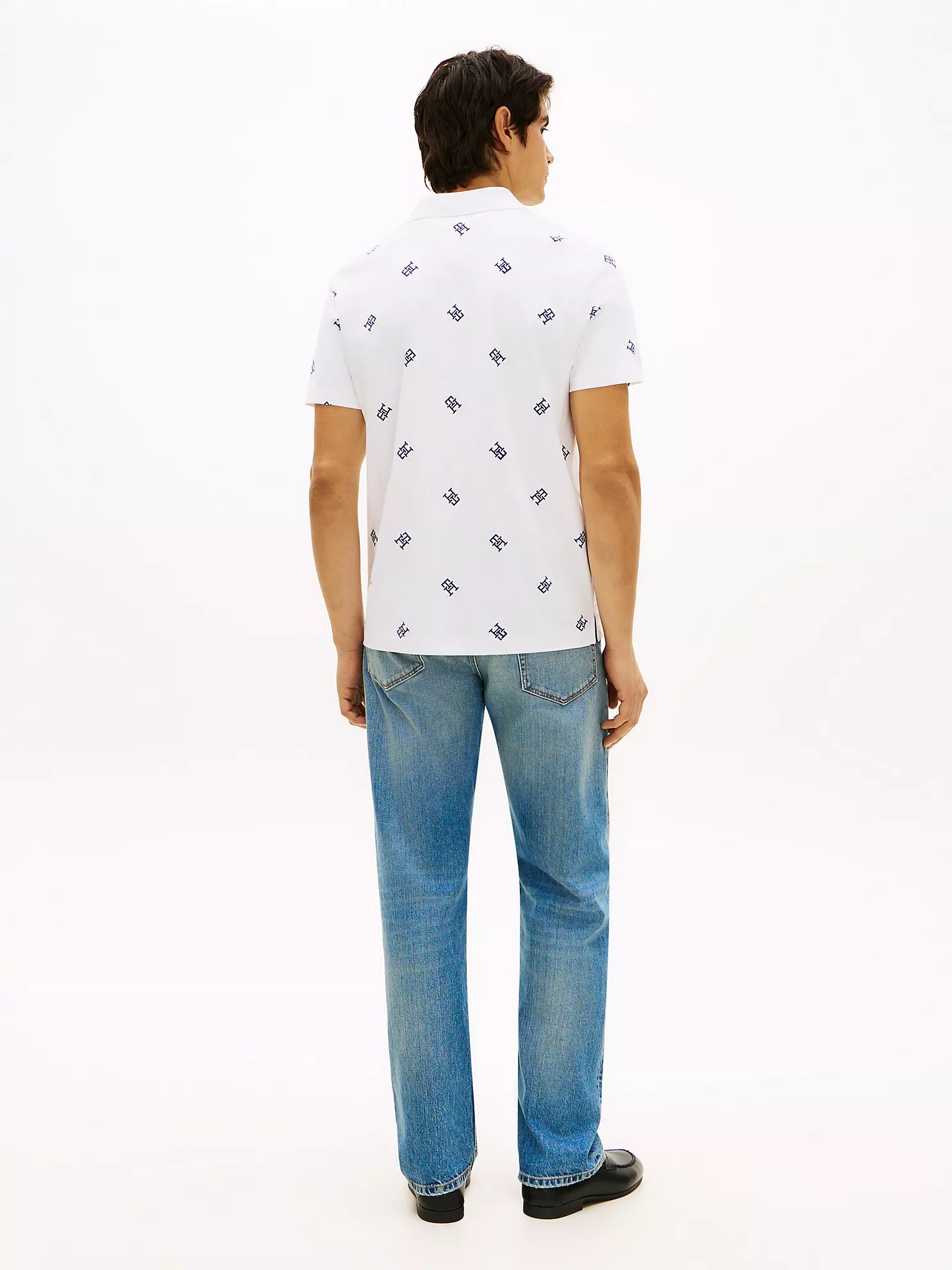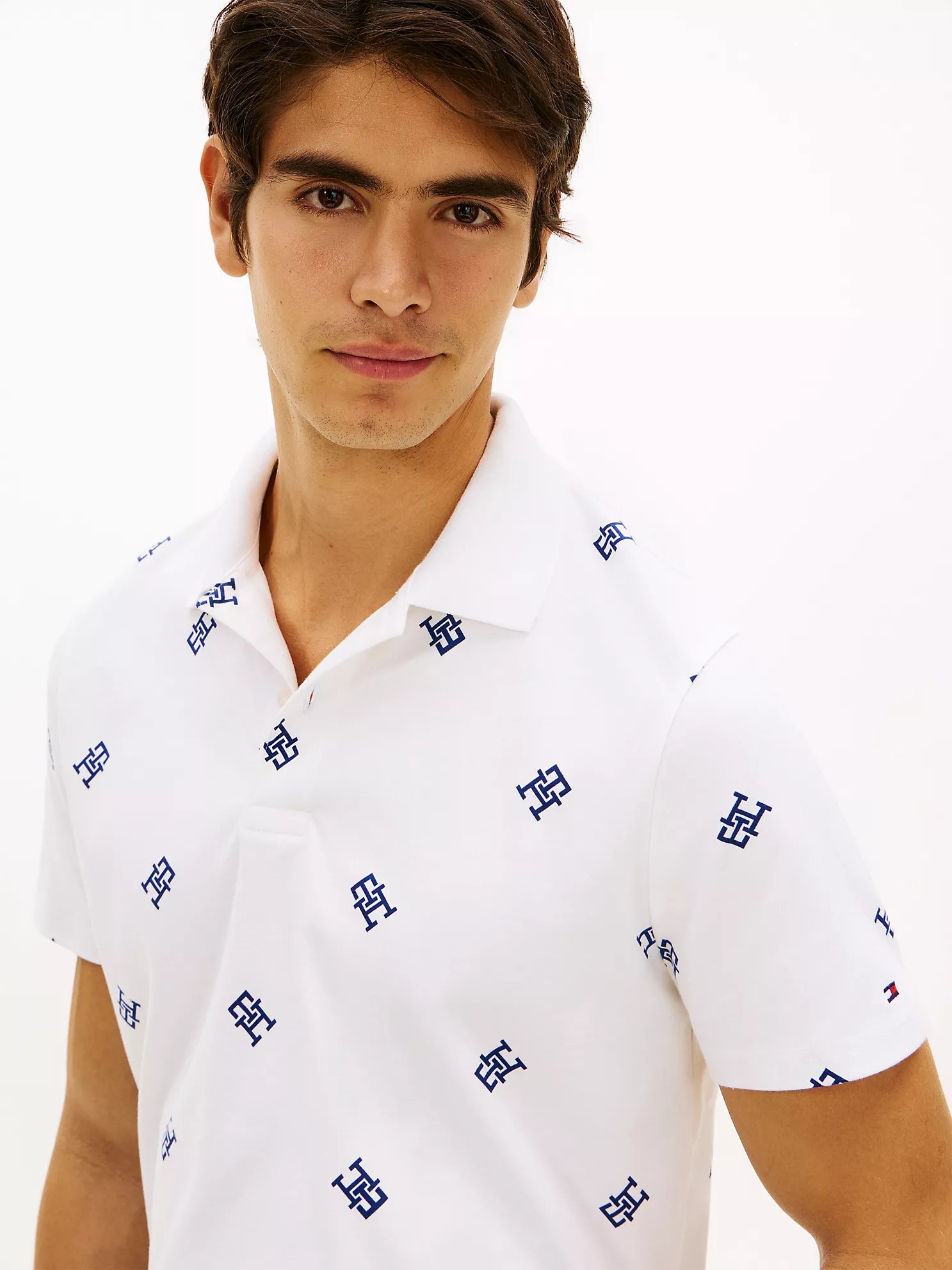 Tommy Hilfiger men’s polo. A signature take on a preppy sports wardrobe classic, this polo is made from a double-knit interlock weave for a smooth and extremely soft feel, inside and out. The allover monogram design adds statement style.
