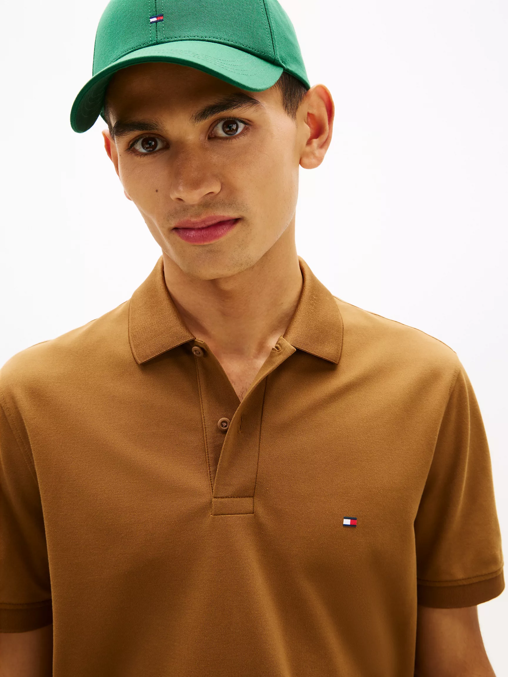 Tommy Hilfiger men’s polo. This performance-inspired tech polo combines four-way stretch pique, known for its subtle, textured finish, with moisture-wicking technology. It mixes a sporty edge with classic, polished details for a signature Hilfiger look.