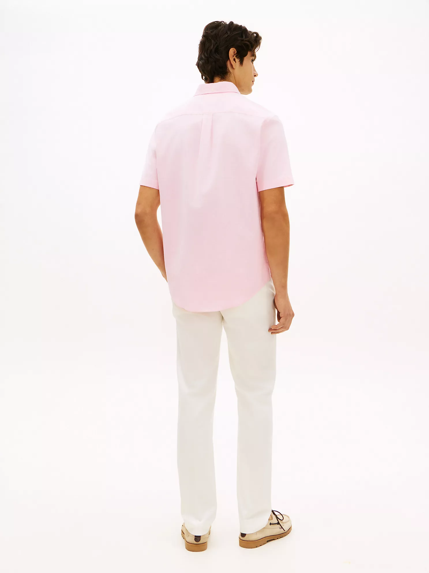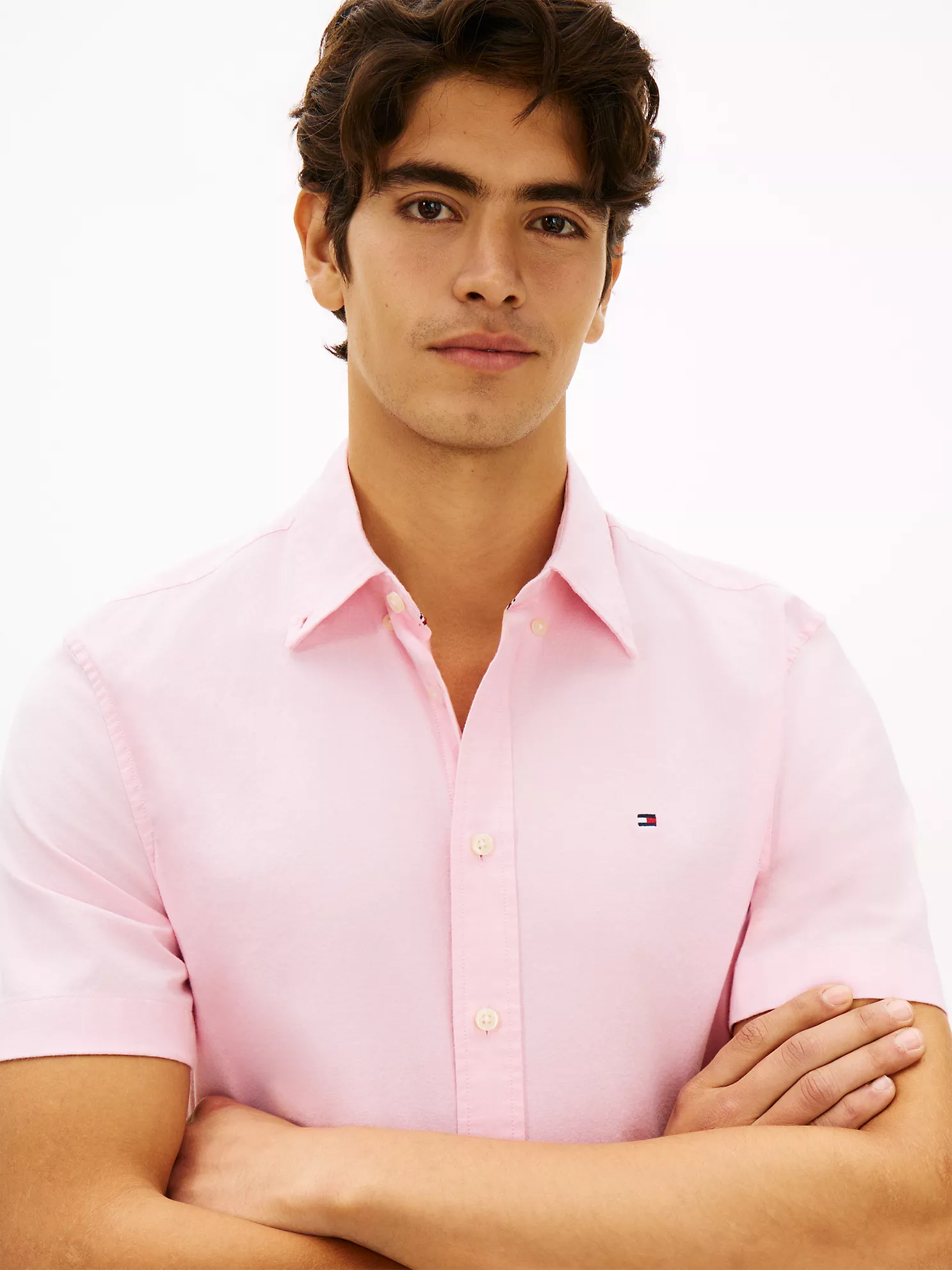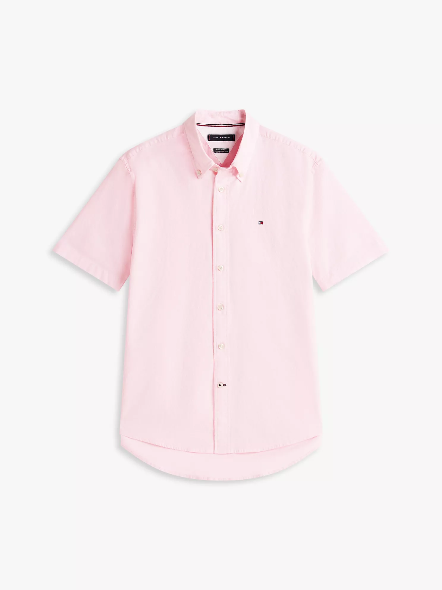 Tommy Hilfiger men’s shirt. Embrace classic, easy-going style with this short-sleeve Oxford shirt, distinguished by its easy fit with added stretch and subtle branding.