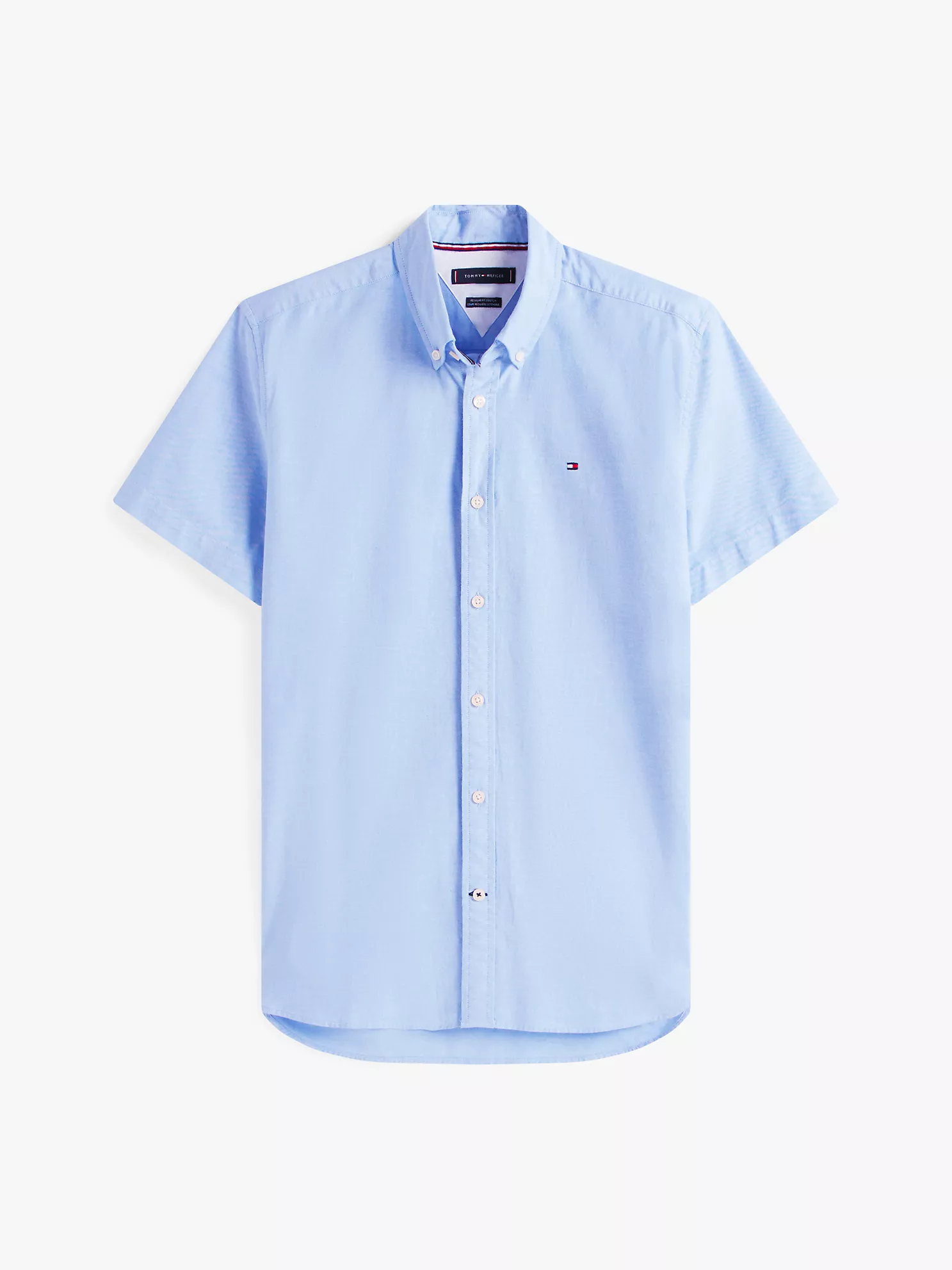 Tommy Hilfiger men’s shirt. Embrace classic, easy-going style with this short-sleeve Oxford shirt, distinguished by its easy fit with added stretch and subtle branding.