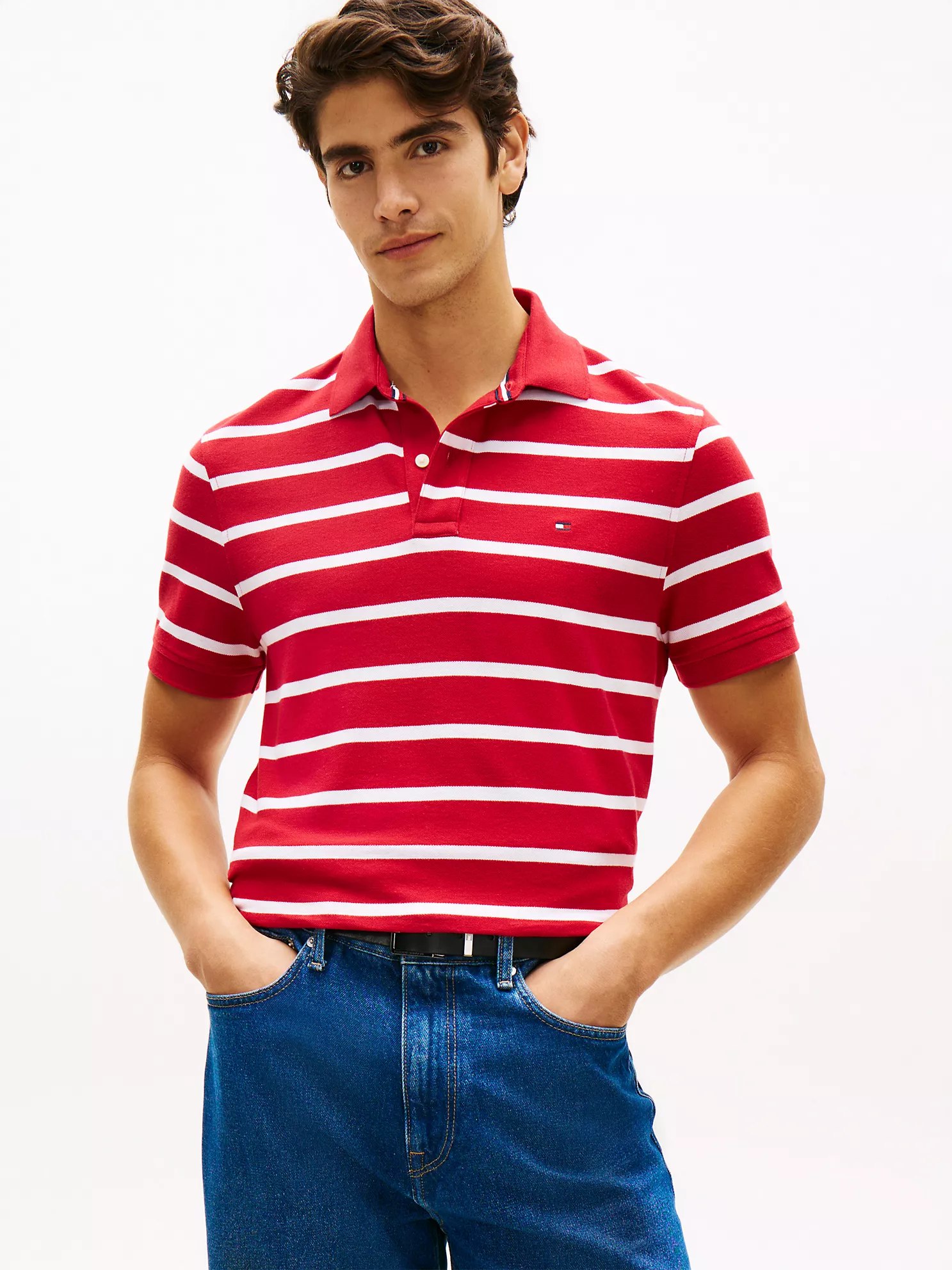 Tommy Hilfiger men’s polo. What we do best, this classic polo is made from lightweight performance fabric that wicks away moisture to help keep you cool and dry.