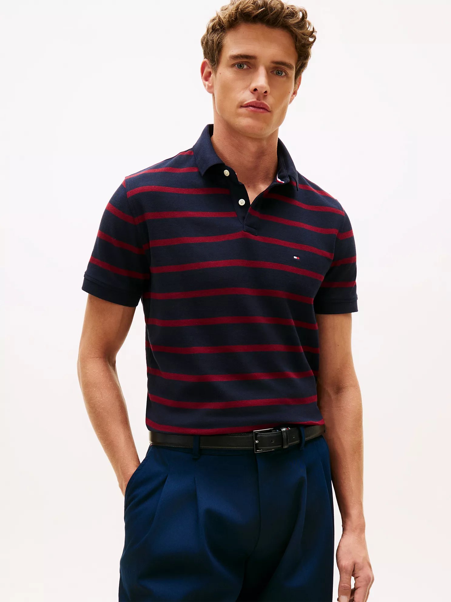 Tommy Hilfiger men’s polo. What we do best, this classic polo is made from lightweight performance fabric that wicks away moisture to help keep you cool and dry.