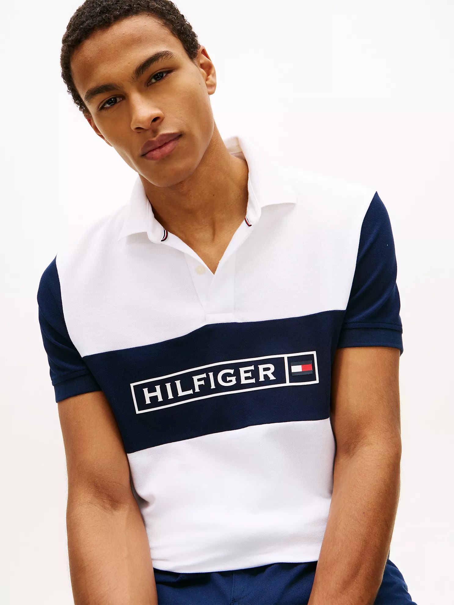 Tommy Hilfiger men’s polo. Our quick-dry, moisture-wicking polo is made from a cotton blend in a piqué weave, known for its subtle, textured finish that adds dimension and breathability. The medium-weight stretch fabric strikes the ideal balance of structure and softness, offering a lightweight feel that stays comfortable throughout the day.