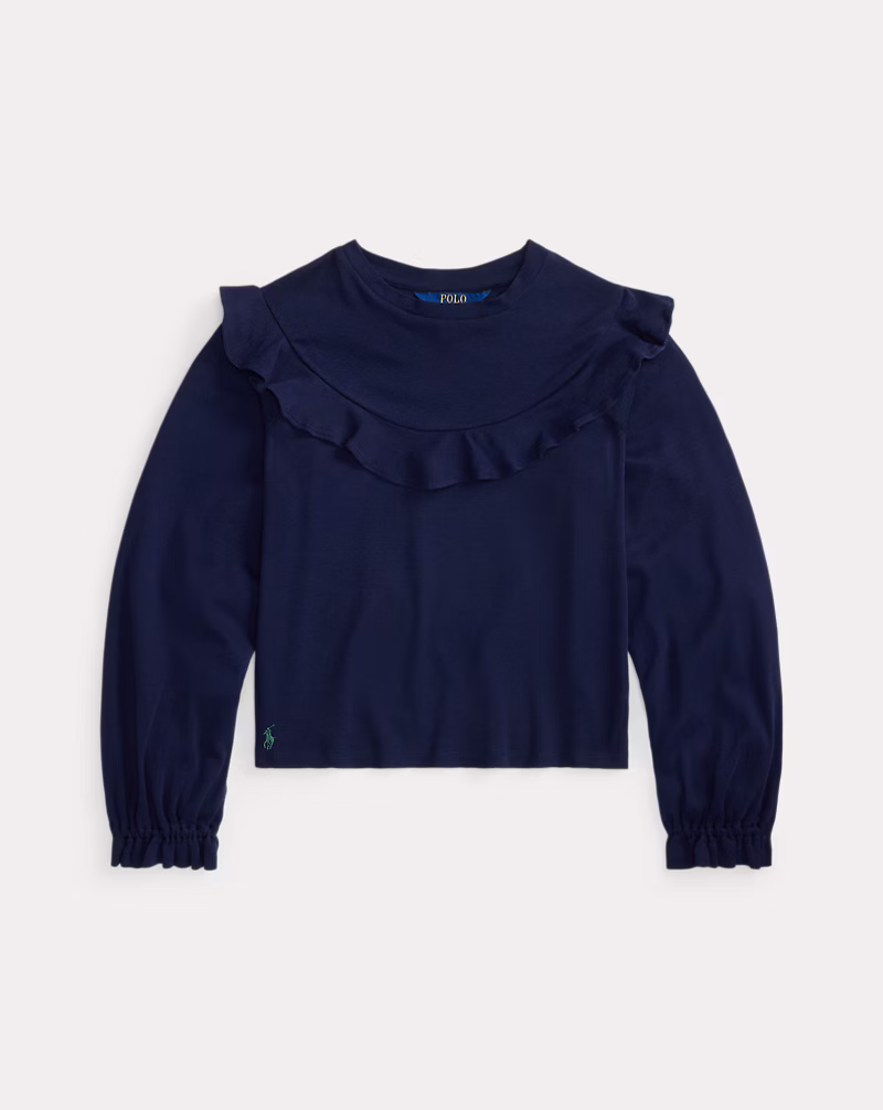 Ruffled Cotton-Modal TopTODDLER/KID GILRS – Refined Navy#100064120
