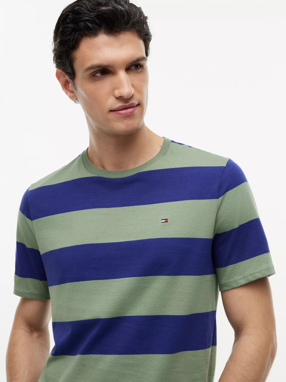 Tommy Hilfiger men’s T-shirt. Made from a cotton-jersey knit with a smooth, soft feel and excellent stretch, our rugby stripe logo tee is super comfortable.