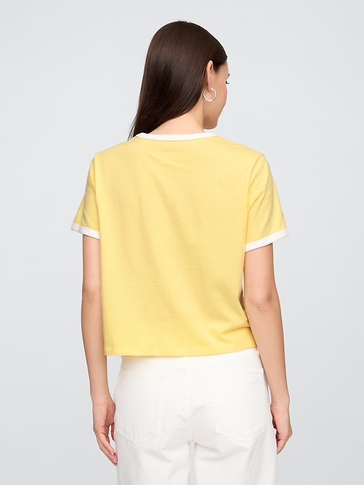 Shrunken Ringer Graphic T-Shirt- Pale Banana