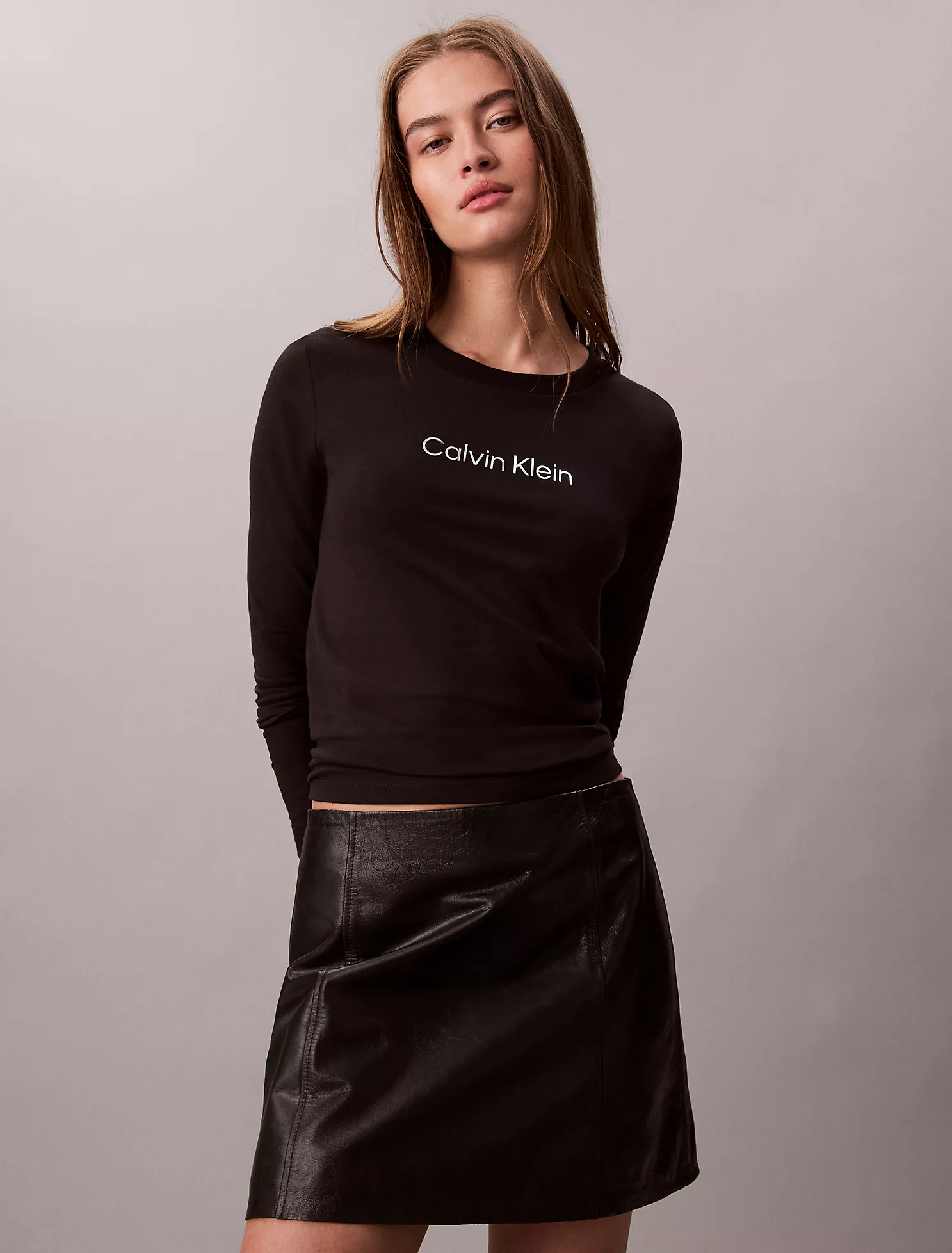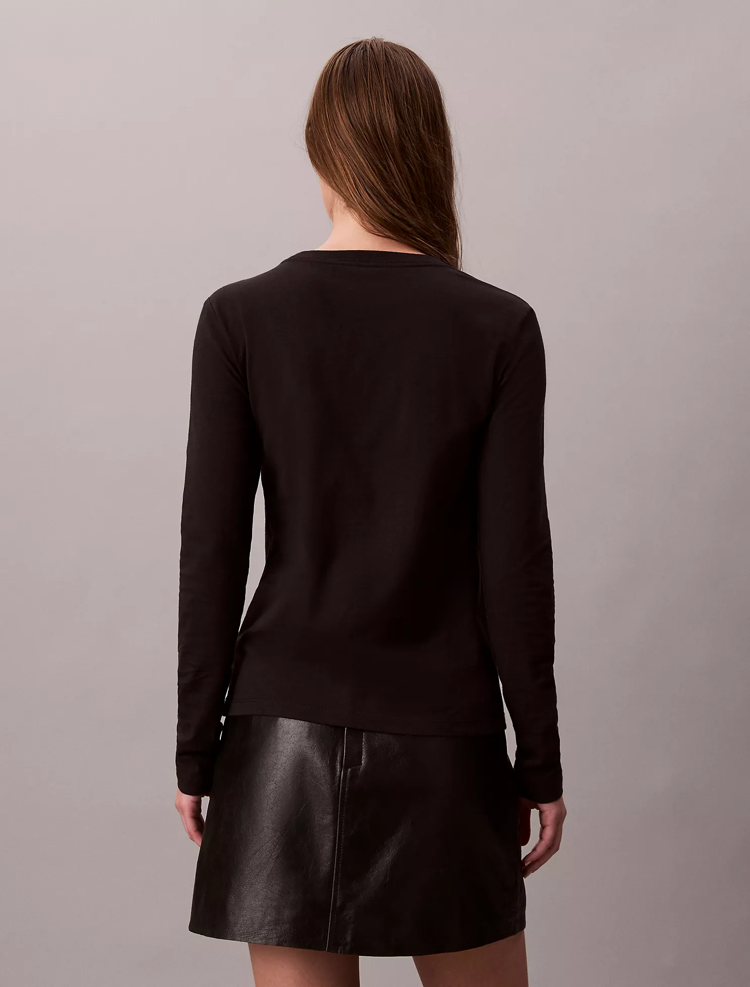 A slim t-shirt printed with a logo graphic at the center. Made from soft cotton stretch for breathable comfort. Styled with long sleeves and a crewneck.