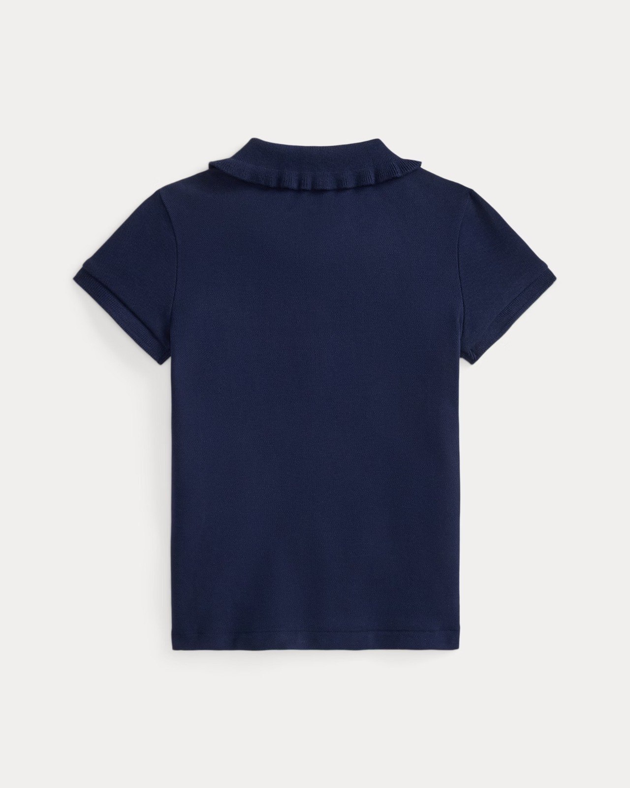 Stretch Mesh Ruffled Polo Shirt Toddler/Kids Girl- Refined Navy#100046775