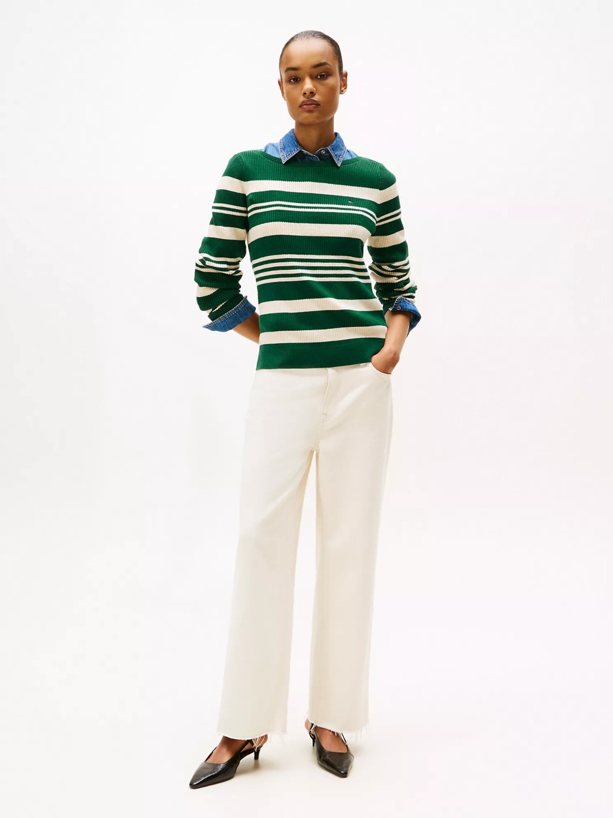 Tommy Hilfiger women’s sweater. Our premium cotton boatneck sweater takes on a textured feel thanks to the soft rib-knit construction and wide-rib trim accents.