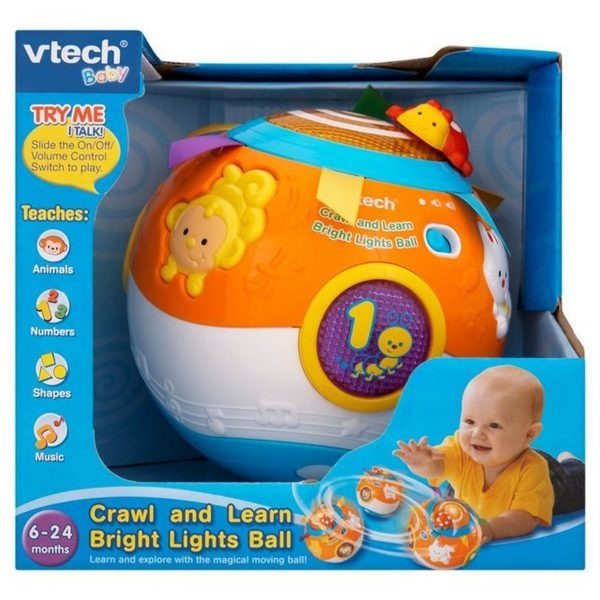 Built-in motor activates to make the ball roll around and around, promoting crawling