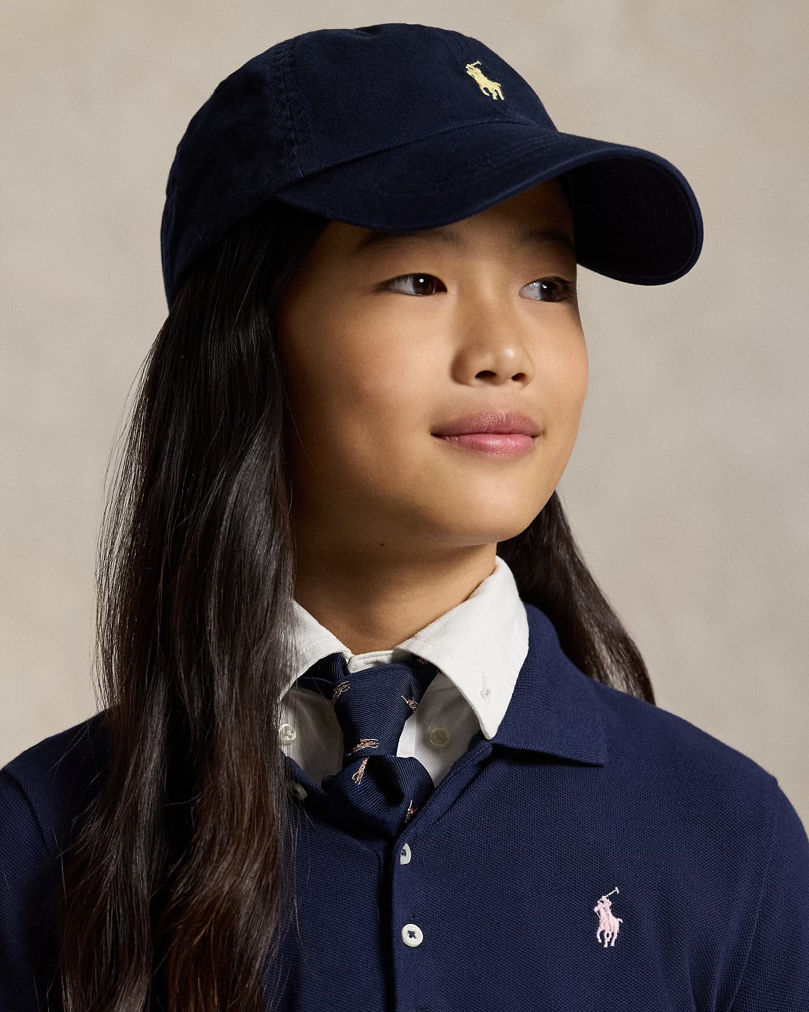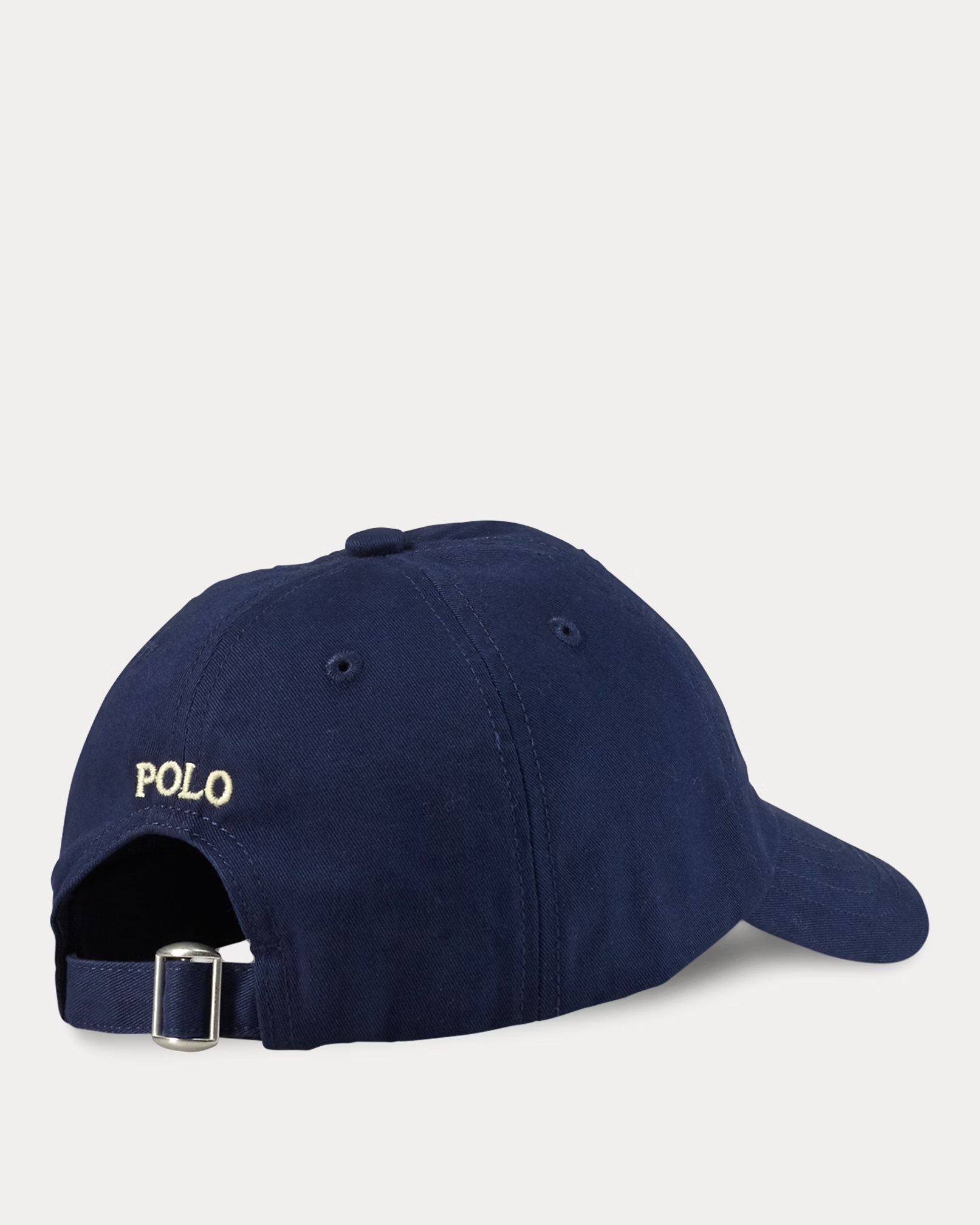A staple of sporty heritage style, our ball cap is defined by a subtle twill weave and signature embroidered Pony accenting the crown. Made with cotton chino fabric specially selected for its flexibility, durability, and softness, the cap offers a relaxed yet refined look. At the back, it features our embroidered “Polo” logo and an adjustable buckled strap.