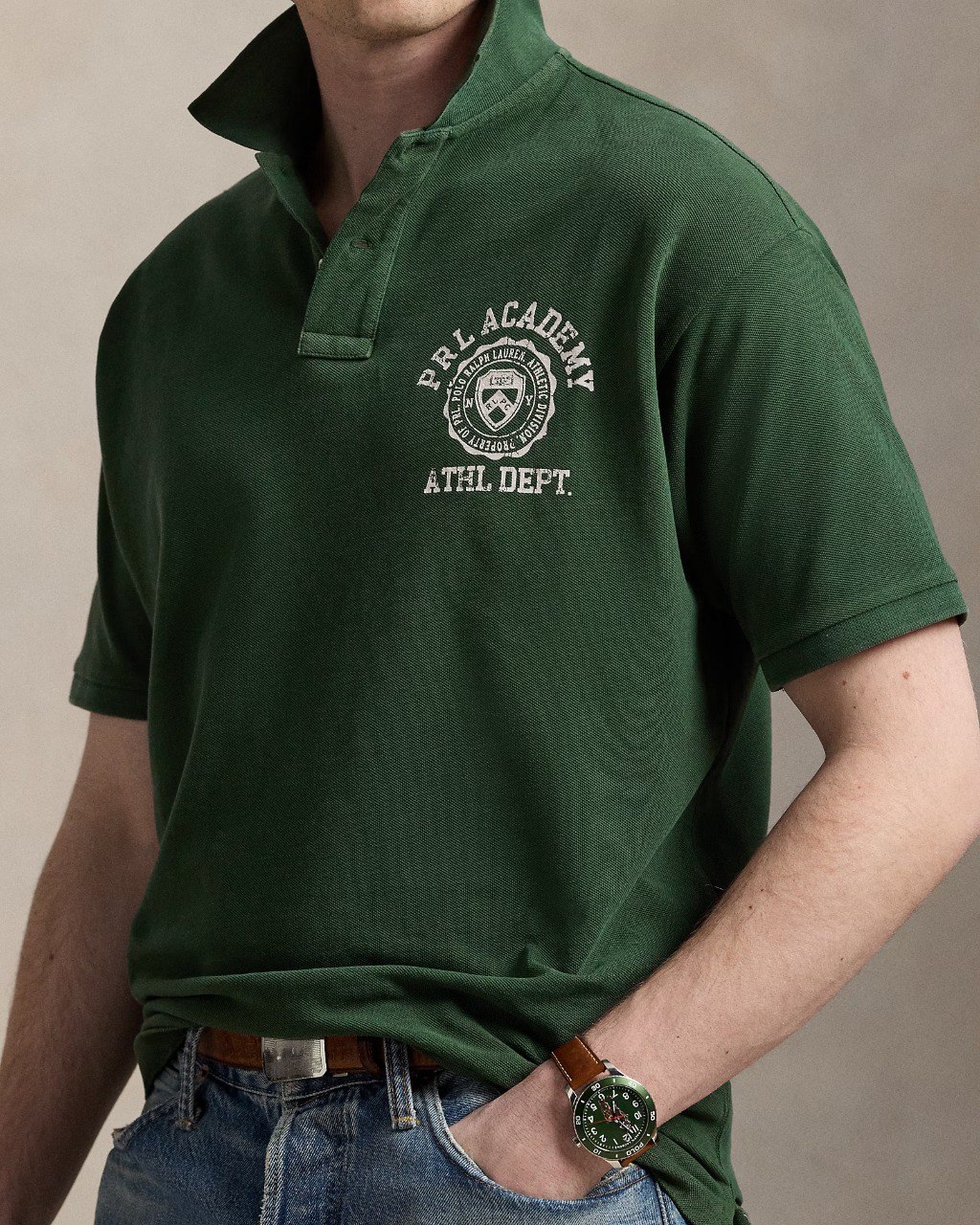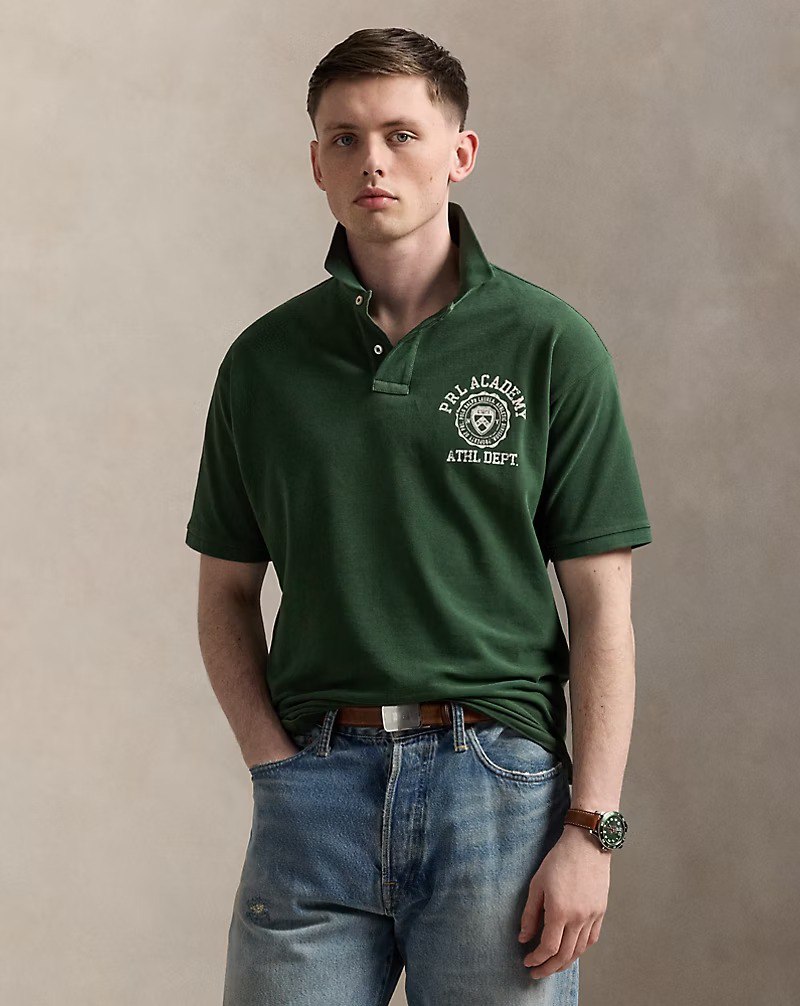 - “PRL Academy,” “Polo Ralph Lauren” emblem, and “Athl. Dept.” printed at the left chest. Tennis tail.