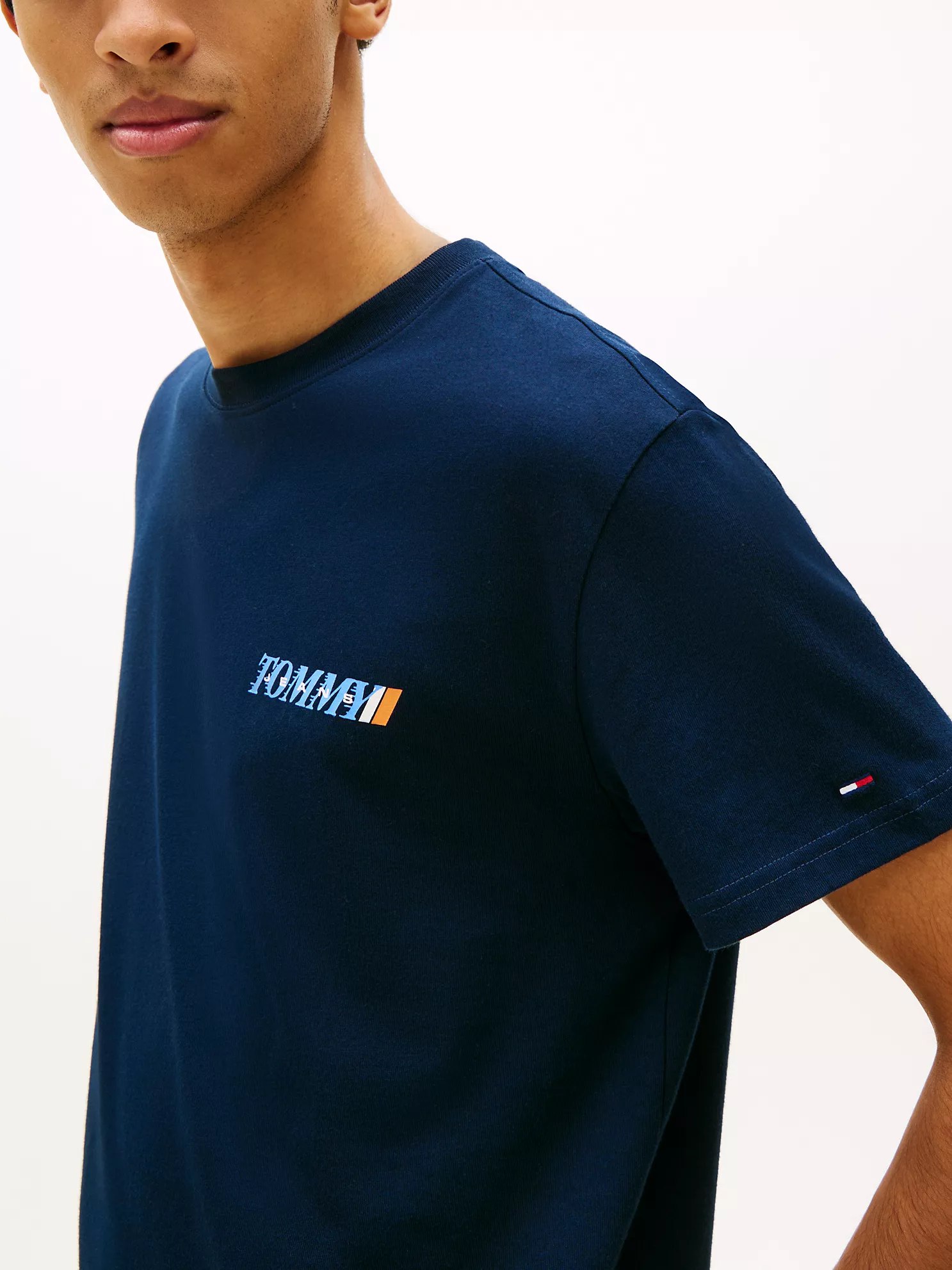 Tommy Hilfiger men’s T-shirt. Our textured dry-carded jersey tee has a soft slightly fuzzy feel. The breathable cotton weave keeps you cool and comfortable all day. Part of our Tommy Jeans collection.