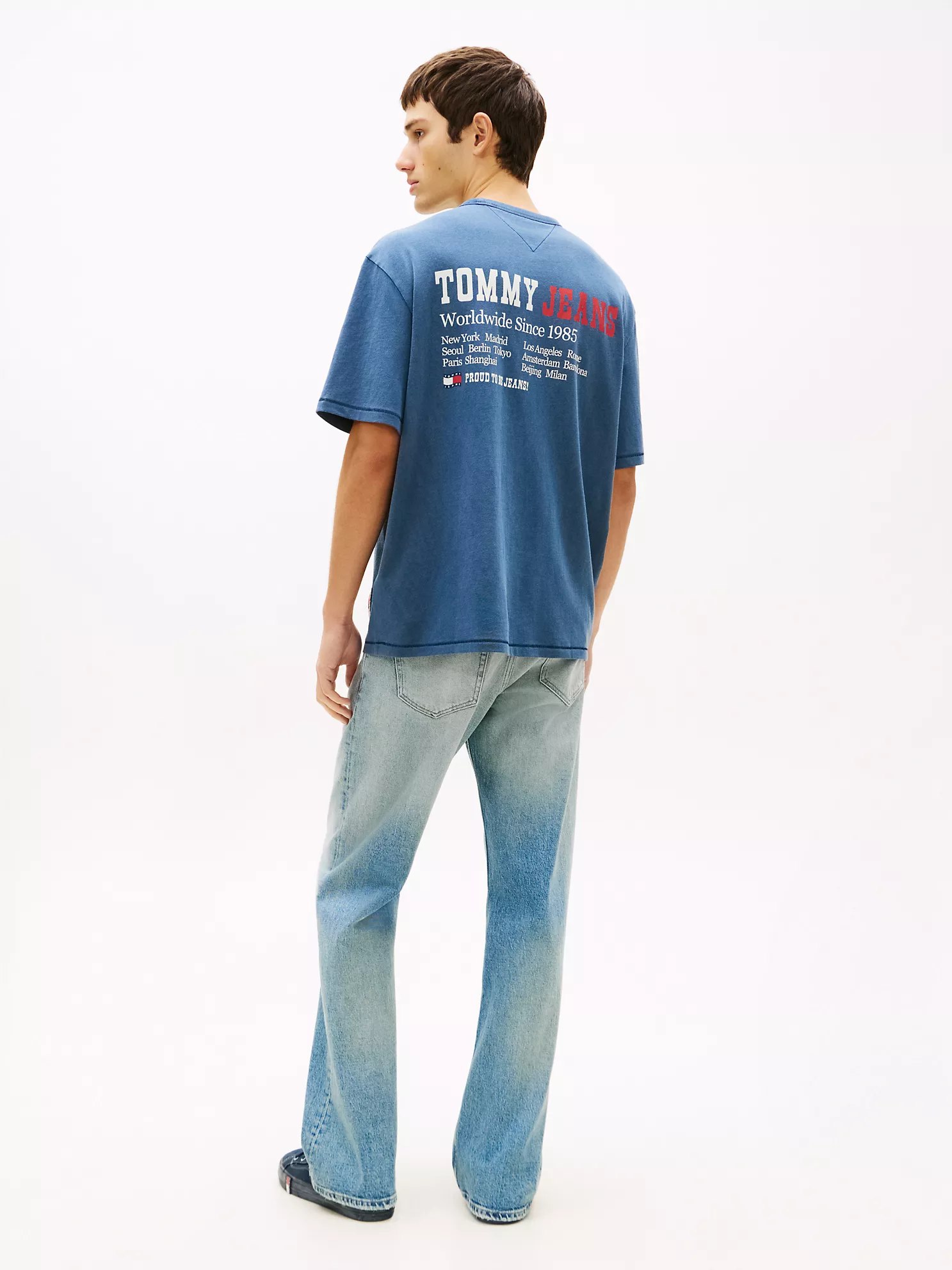 Tommy Hilfiger men’s T-shirt. Tap into retro Tommy spirit with our back wavy flag tee, inspired by the archive looks of the โ€˜90s. Made from soft cotton jersey with a rich pigment-dyed hue, it’s an easy comfortable layer. Part of our Tommy Jeans collection.