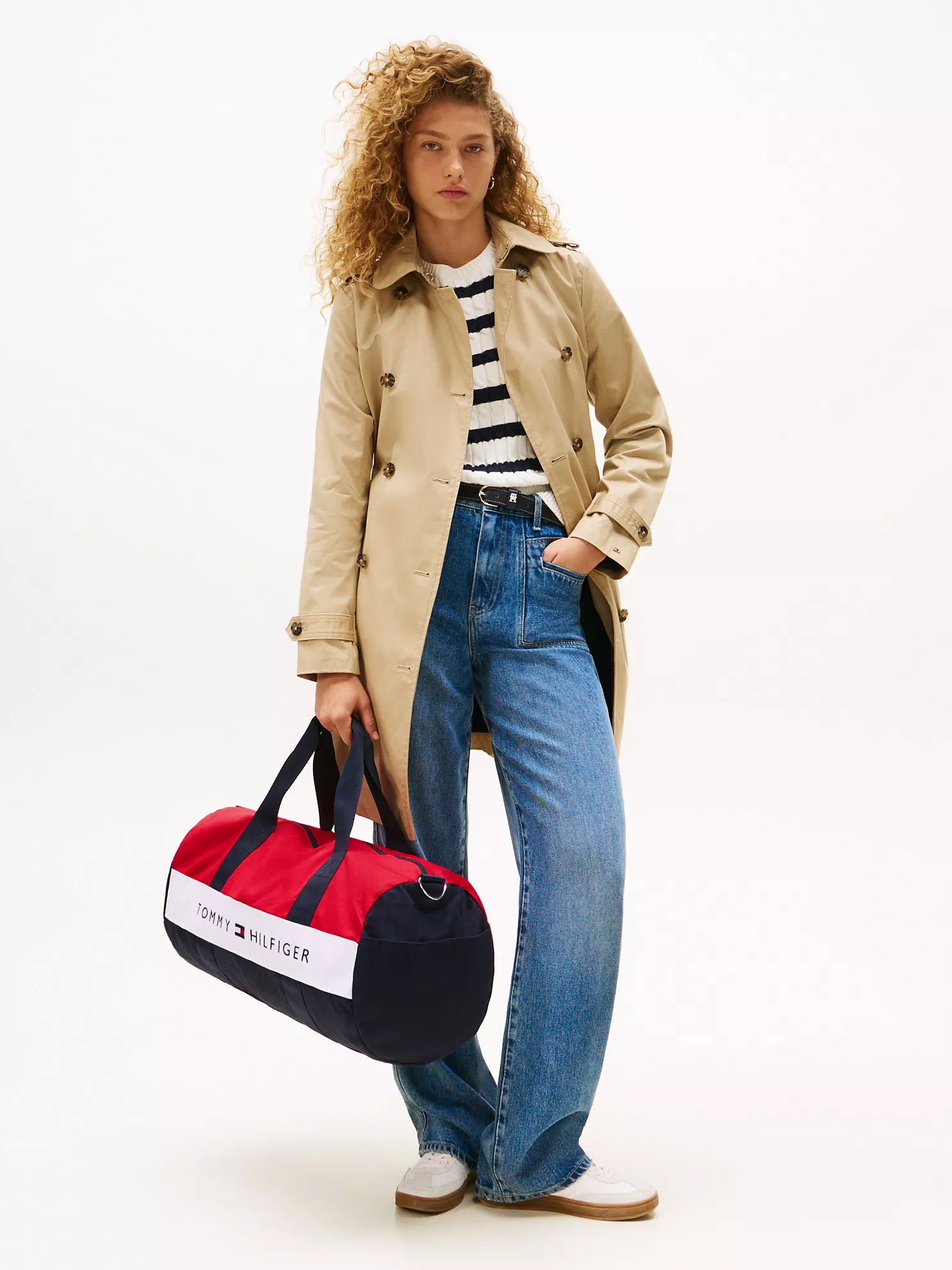 Tommy Hilfiger men’s bag. Our sturdy logo duffle features a removable shoulder strap and no-fuss open interior to tote your essentials to the gym, on a weekend jaunt or wherever the day may take you. Made from cotton canvas, it’s built to take anything you can throw at it (or in it).