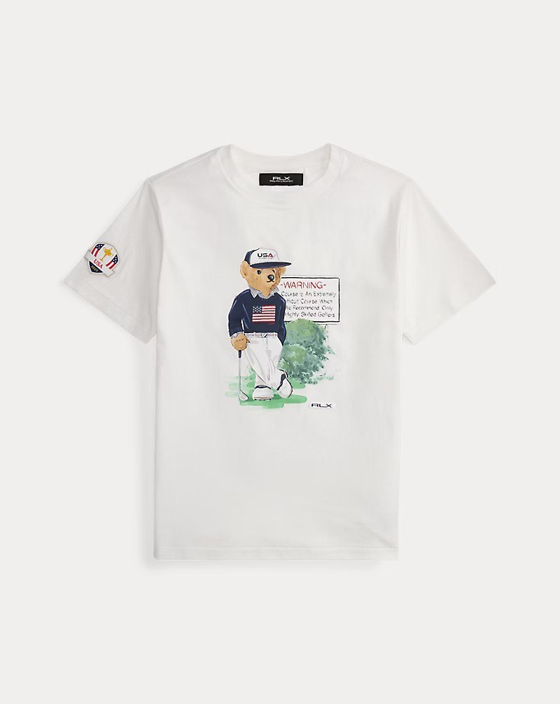- Designed for our 2025 U.S. Ryder Cup Team Collection, this cotton jersey tee features our beloved Polo Bear wearing a version of our Iconic Flag Sweater that we updated specifically for the players’ uniform. Behind our mascot is the famous sign at Bethpage Black Golf Course that cautions players of its immense difficulty and is a landmark at the location of this year’s tournament. Many start their rounds with a photo by the sign, now a nationally known symbol, as our Polo Bear does here.