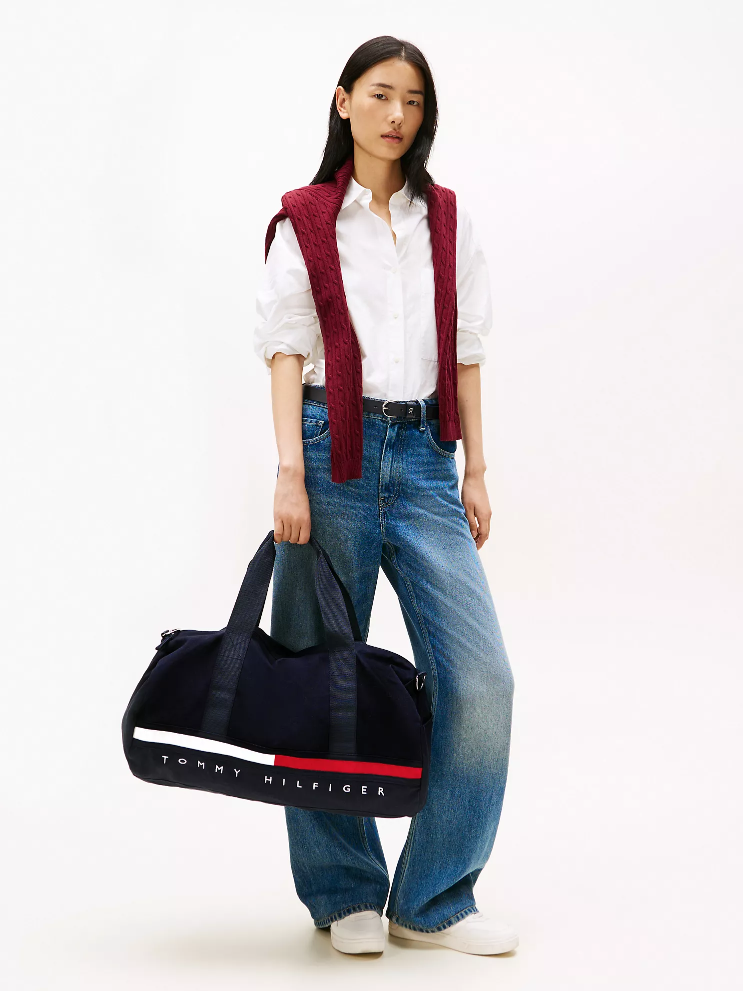 Tommy Hilfiger unisex bag. Designed with ample room for your daily essentials, our duffle is lined to keep your gear dry, and durable enough to take anything you throw at it (or in it). Finished with our iconic flag stripe logo.