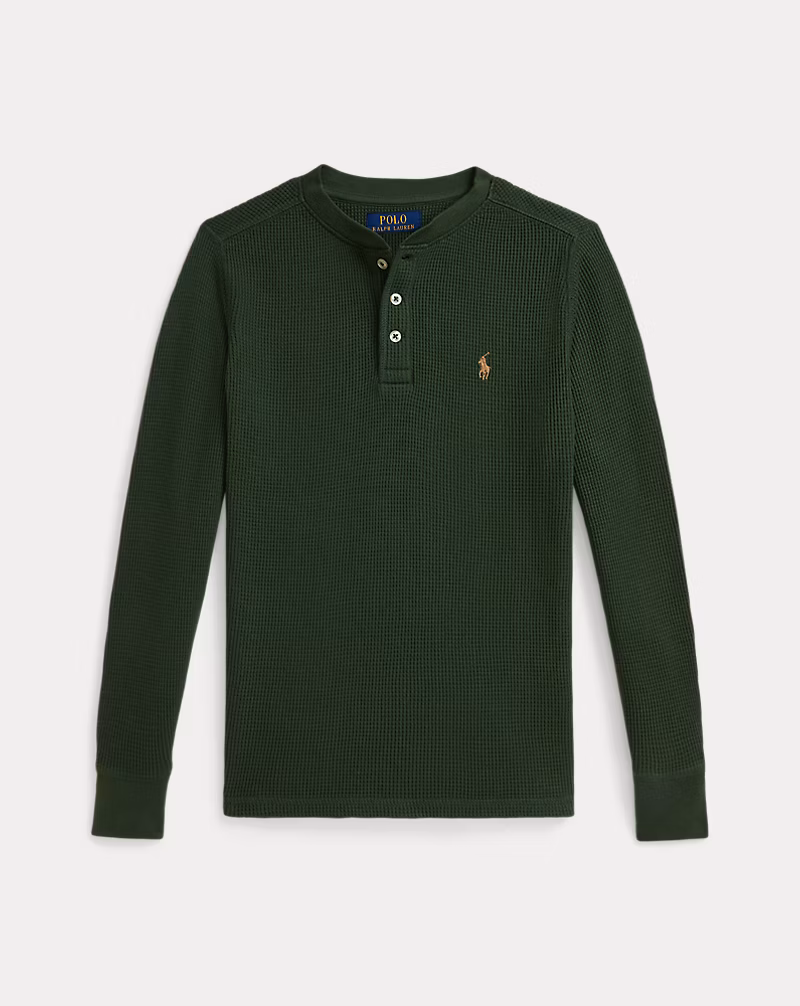 Waffle-Knit Cotton Henley ShirtToddler/Kids Boy-Green