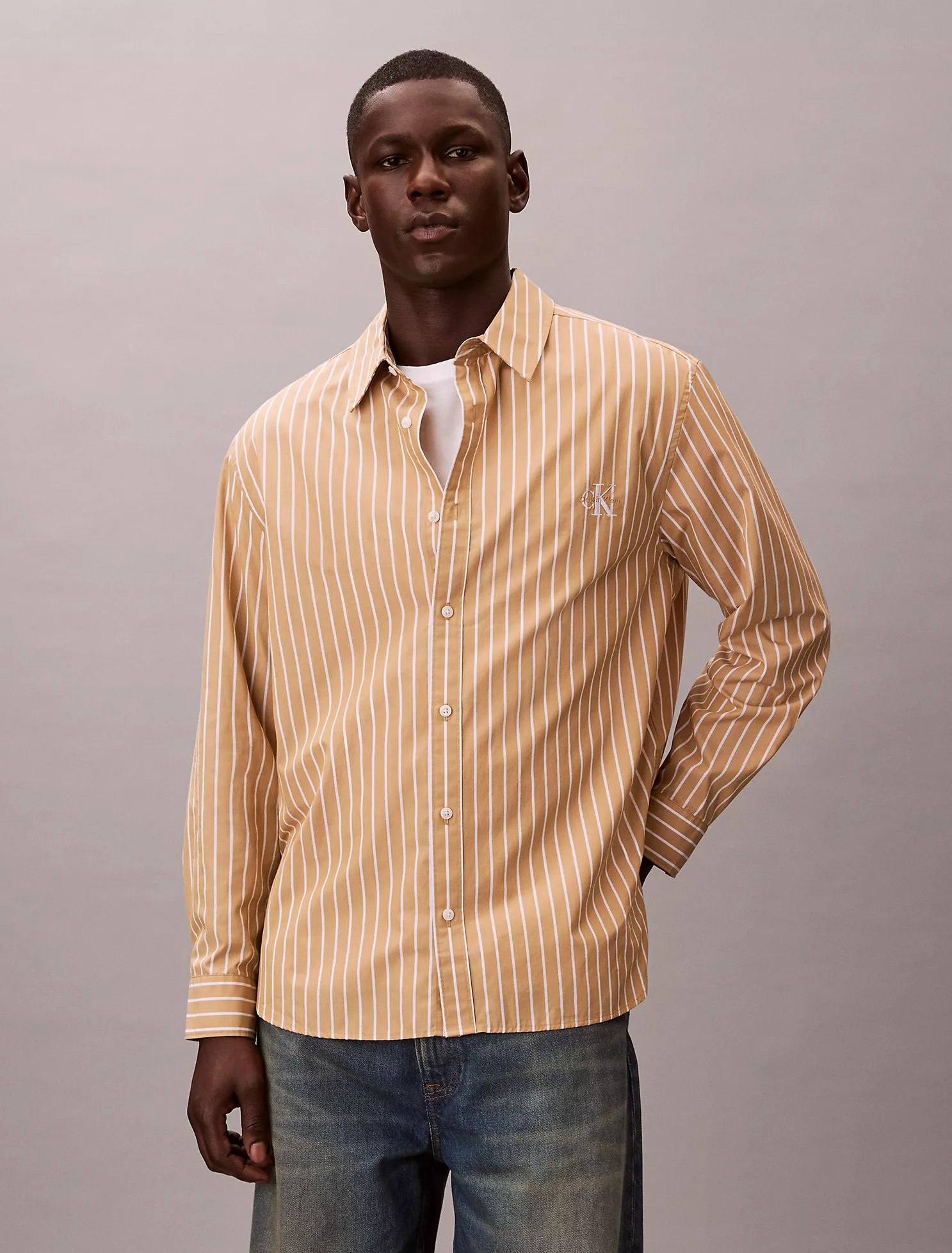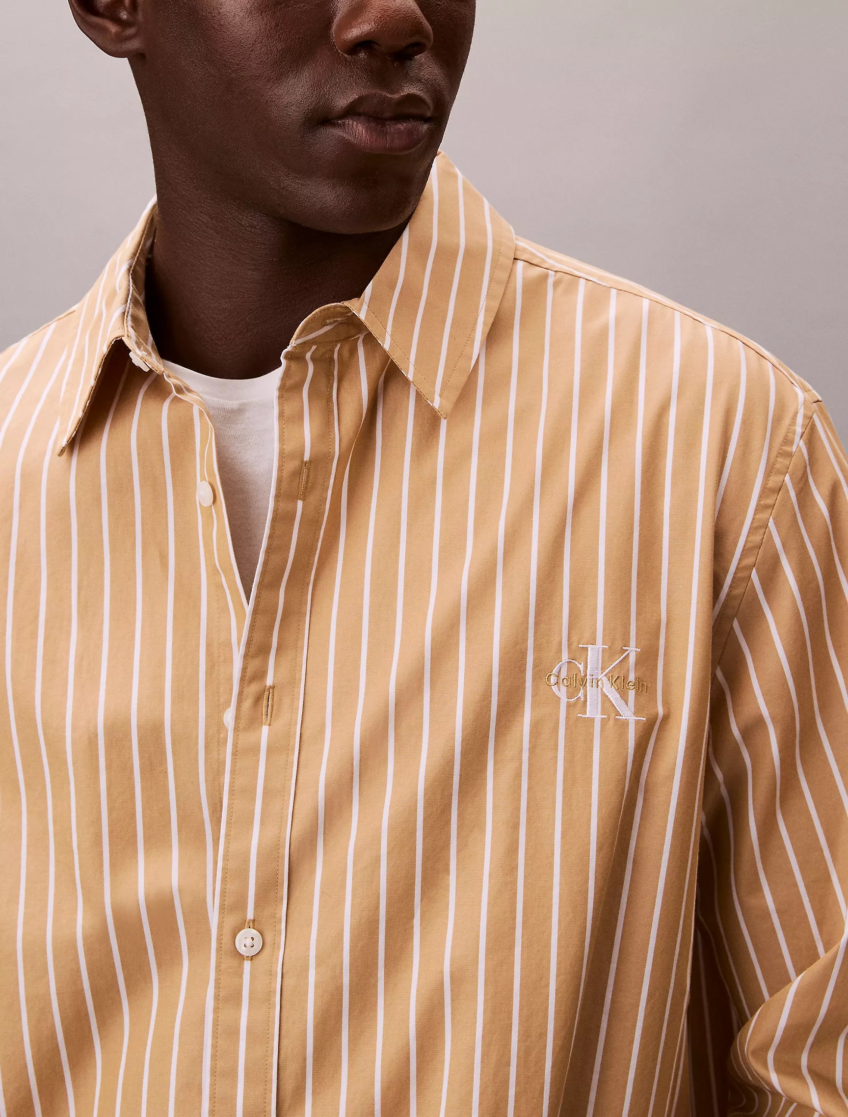 A relaxed poplin button-down shirt cut from 100% cotton. Patterned with stripes, this shirt has long sleeves and a point collar. Finished with the signature monologo at the upper chest.